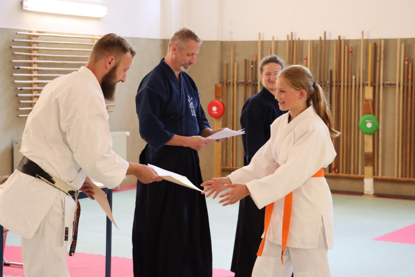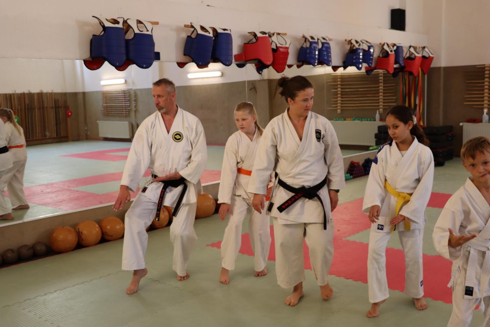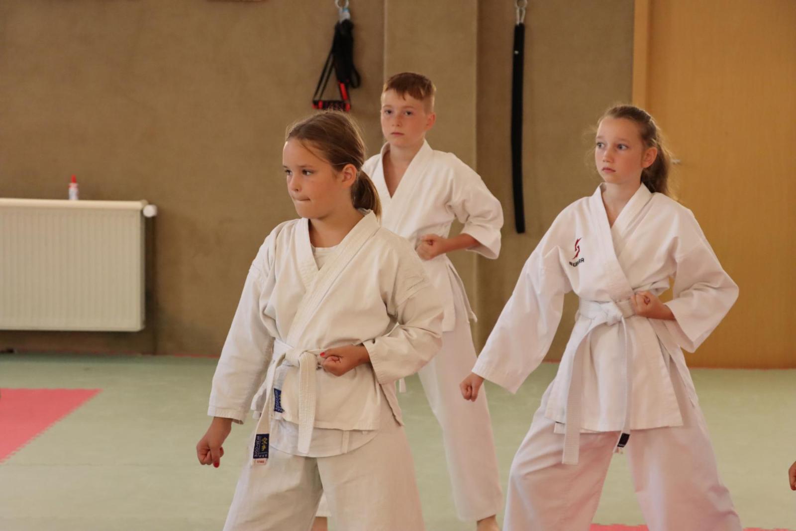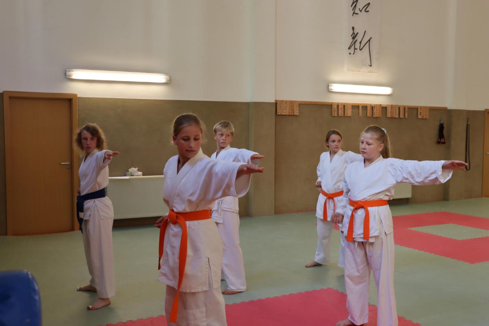 Um sich optimal auf die Prüfung vorzubereiten, gab es zuvor noch ein zweistündiges prüfungsvorbereitendes Training, welches den Prüflingen „den letzten Schliff“ geben sollte. Das Training leitete Sensei Ralf Smolin mit Unterstützung der Senseis Yvonne Fiala und Stefan Born. Im Training wurden noch einmal die prüfungsrelevanten Karate-Techniken und Katas geübt. Es gab hier und da den einen oder anderen Hinweis, was jeder noch an seiner Technik und seiner Kata verbessern kann. Mit diesem Wissen ging es dann in die Prüfung, die im Anschluss an das Training von den drei Senseis abgenommen wurde.