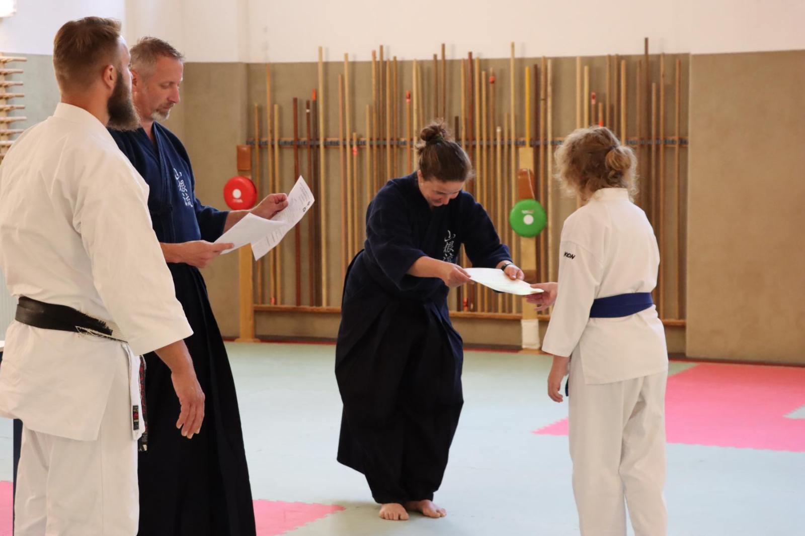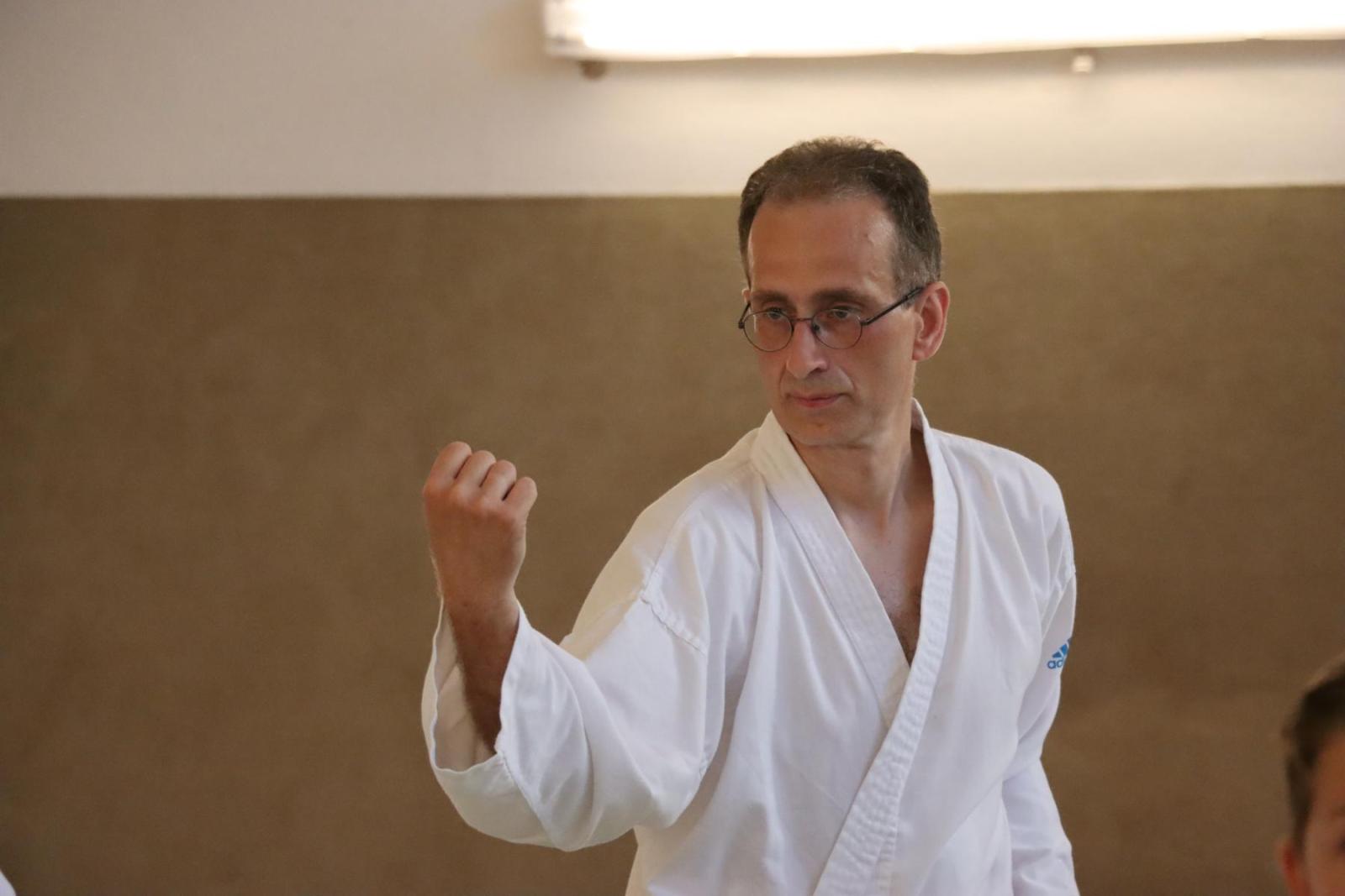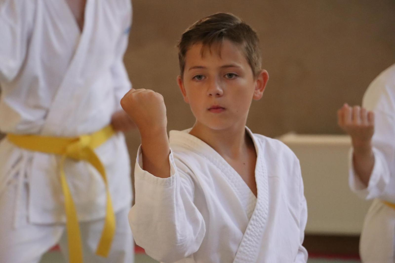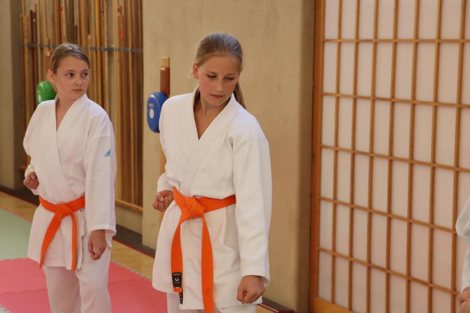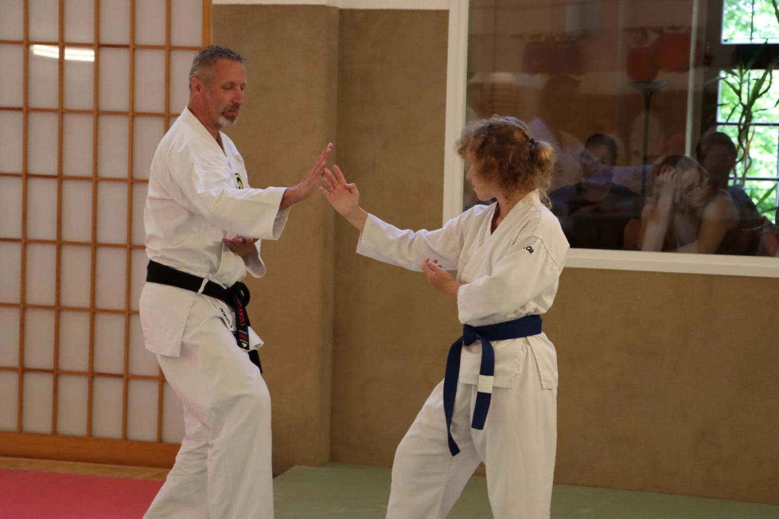 Um sich optimal auf die Prüfung vorzubereiten, gab es zuvor noch ein zweistündiges prüfungsvorbereitendes Training, welches den Prüflingen „den letzten Schliff“ geben sollte. Das Training leitete Sensei Ralf Smolin mit Unterstützung der Senseis Yvonne Fiala und Stefan Born. Im Training wurden noch einmal die prüfungsrelevanten Karate-Techniken und Katas geübt. Es gab hier und da den einen oder anderen Hinweis, was jeder noch an seiner Technik und seiner Kata verbessern kann. Mit diesem Wissen ging es dann in die Prüfung, die im Anschluss an das Training von den drei Senseis abgenommen wurde.