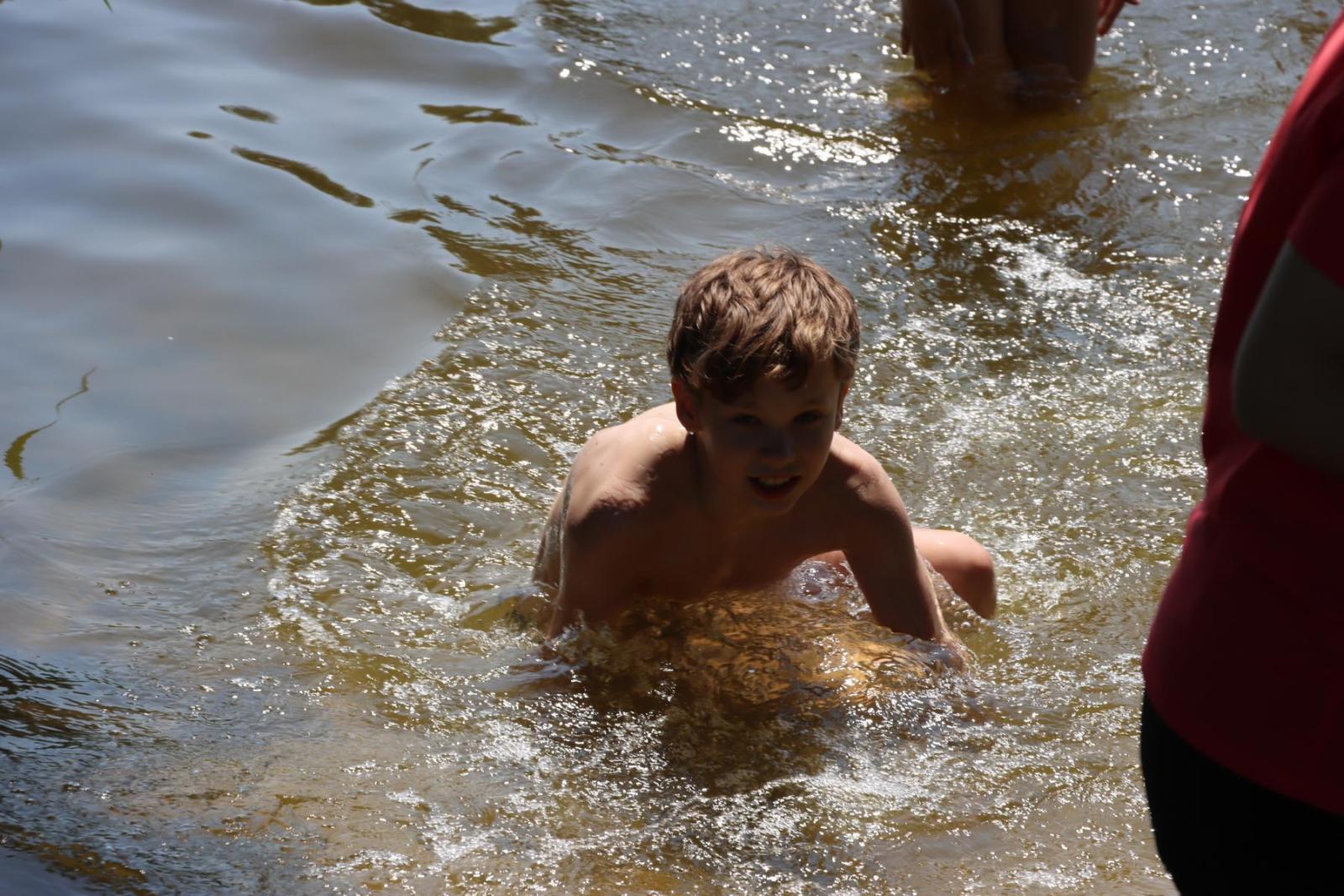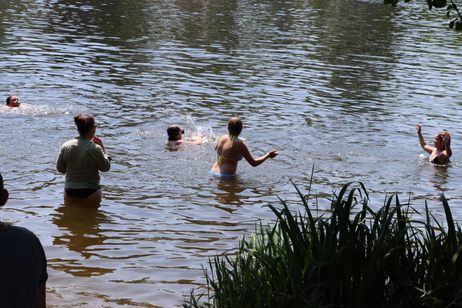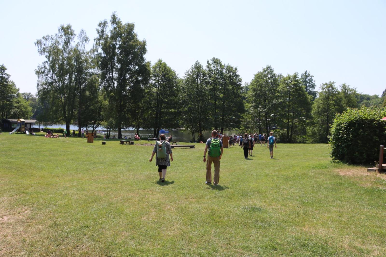 Unser Ziel war der idyllische Bremer Teich, der uns mit seiner ruhigen Atmosphäre und seiner natürlichen Schönheit lockte. Wir kämpften uns durch dichte Wälder und über schmale Pfade, immer dem Ziel entgegen. Die Landschaft bot uns dabei stets neue und faszinierende Ausblicke, die uns den Atem raubten und unsere Strapazen vergessen ließen. Endlich erreichten wir den Bremer Teich, der uns mit seinem klaren Wasser begeisterte. Ohne zu zögern sprangen die Kinder und einige mutige Erwachsene ins erfrischende Wasser und genossen die wohlverdiente Abkühlung nach der anstrengenden Wanderung. Die Freude und der Spaß, den wir dabei hatten, waren einfach unbeschreiblich.