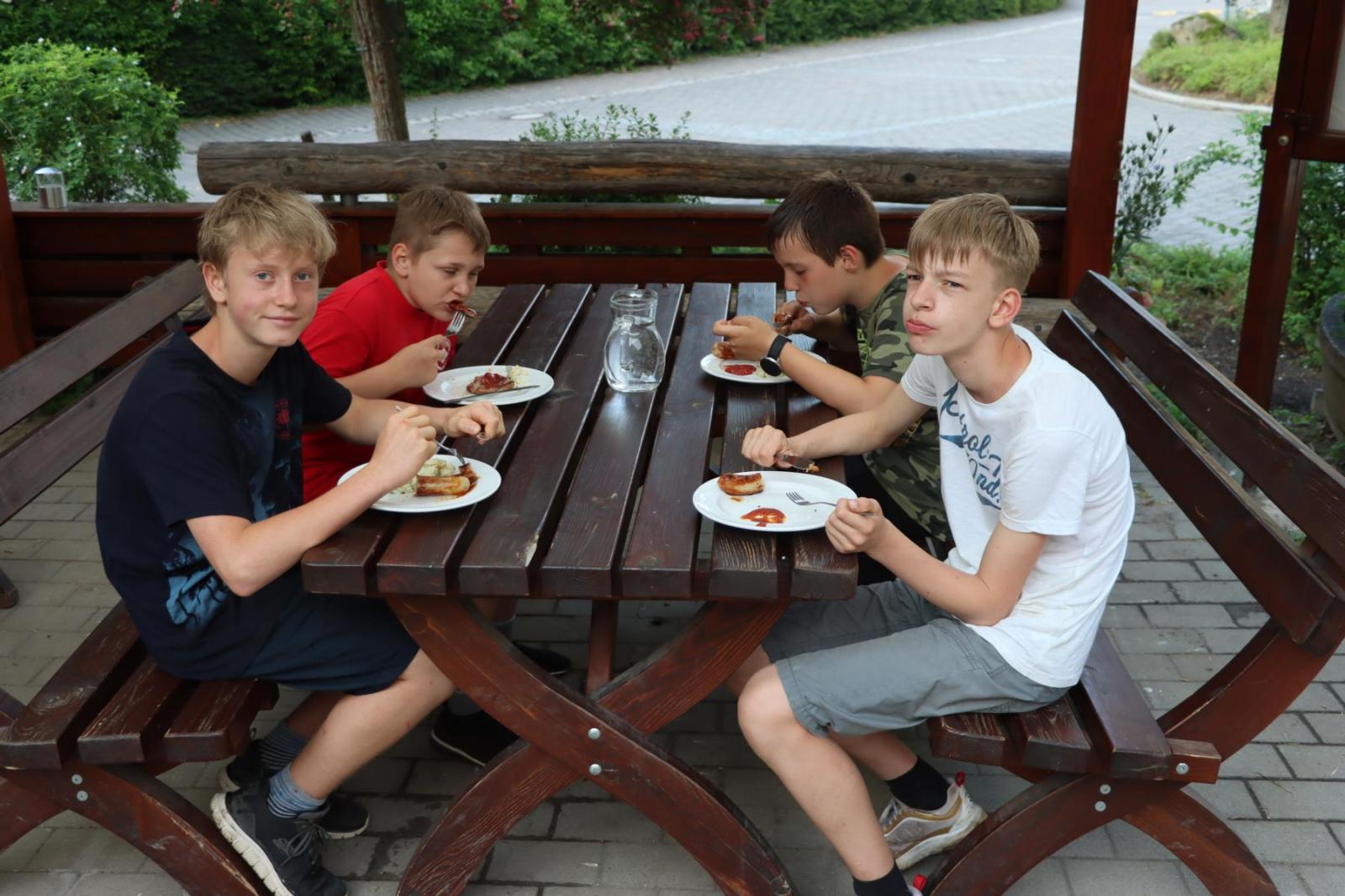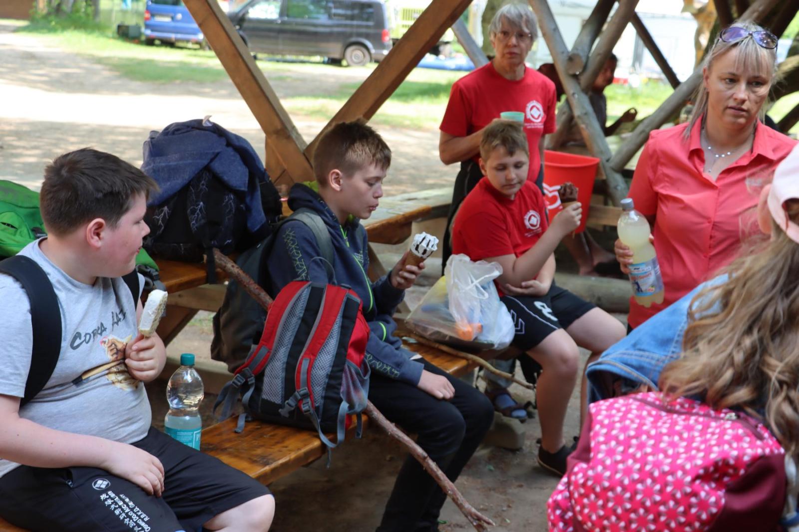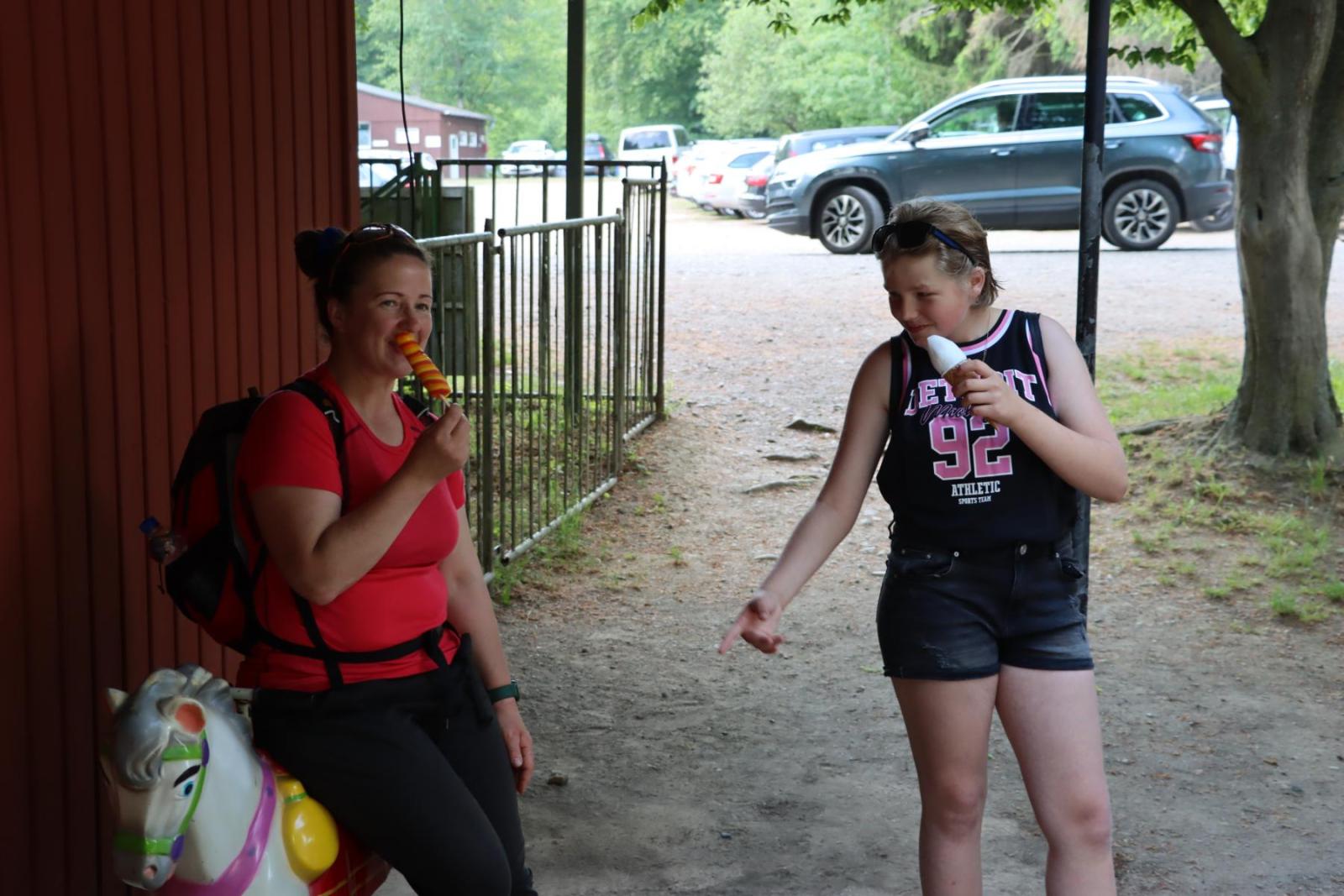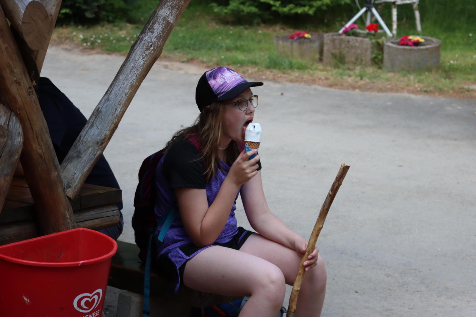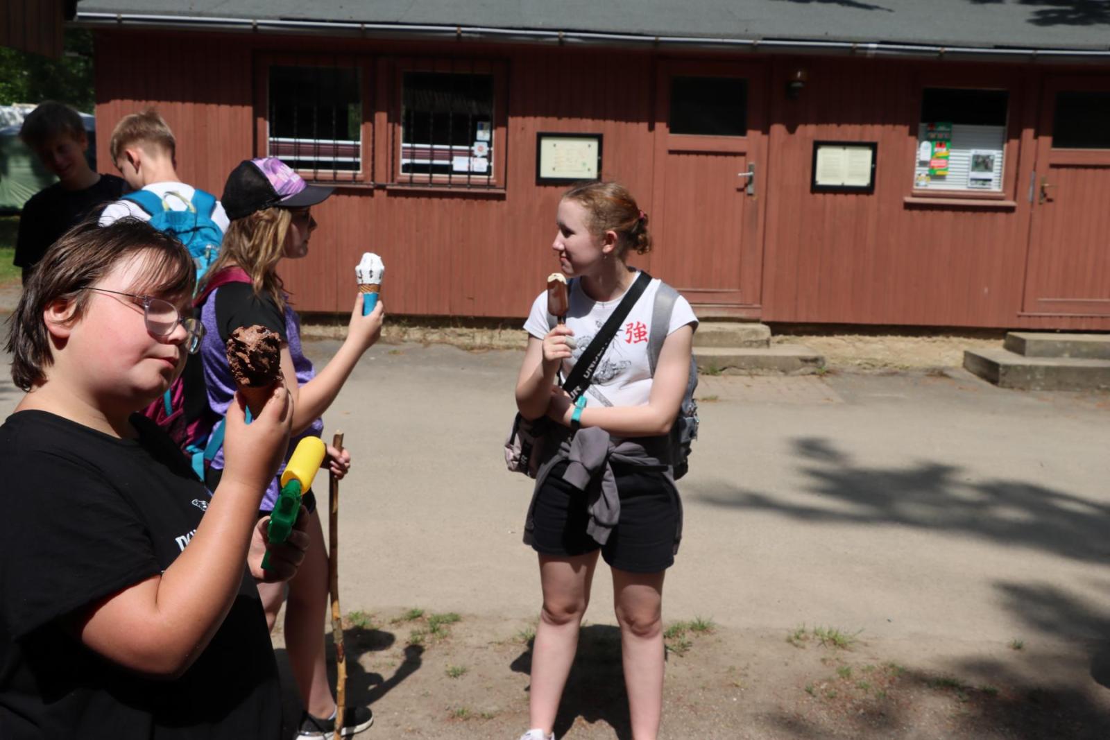 Nach einer ausgiebigen Pause und vielen fröhlichen Momenten beschlossen wir uns für den Rückweg zu stärken. Und was könnte besser sein, um neue Energie zu tanken, als ein leckeres Eis? Gestärkt und voller Energie machten wir uns auf den Rückweg auf der uns wie schon auf dem Hinweg die Sonne begleitete und ihre warmen Strahlen auf uns herabschickte. Doch das Glück sollte nicht von Dauer sein, denn kurz vor unserer Ankunft begann es plötzlich heftig zu regnen. Aber auch das konnte unsere gute Laune nicht trüben.