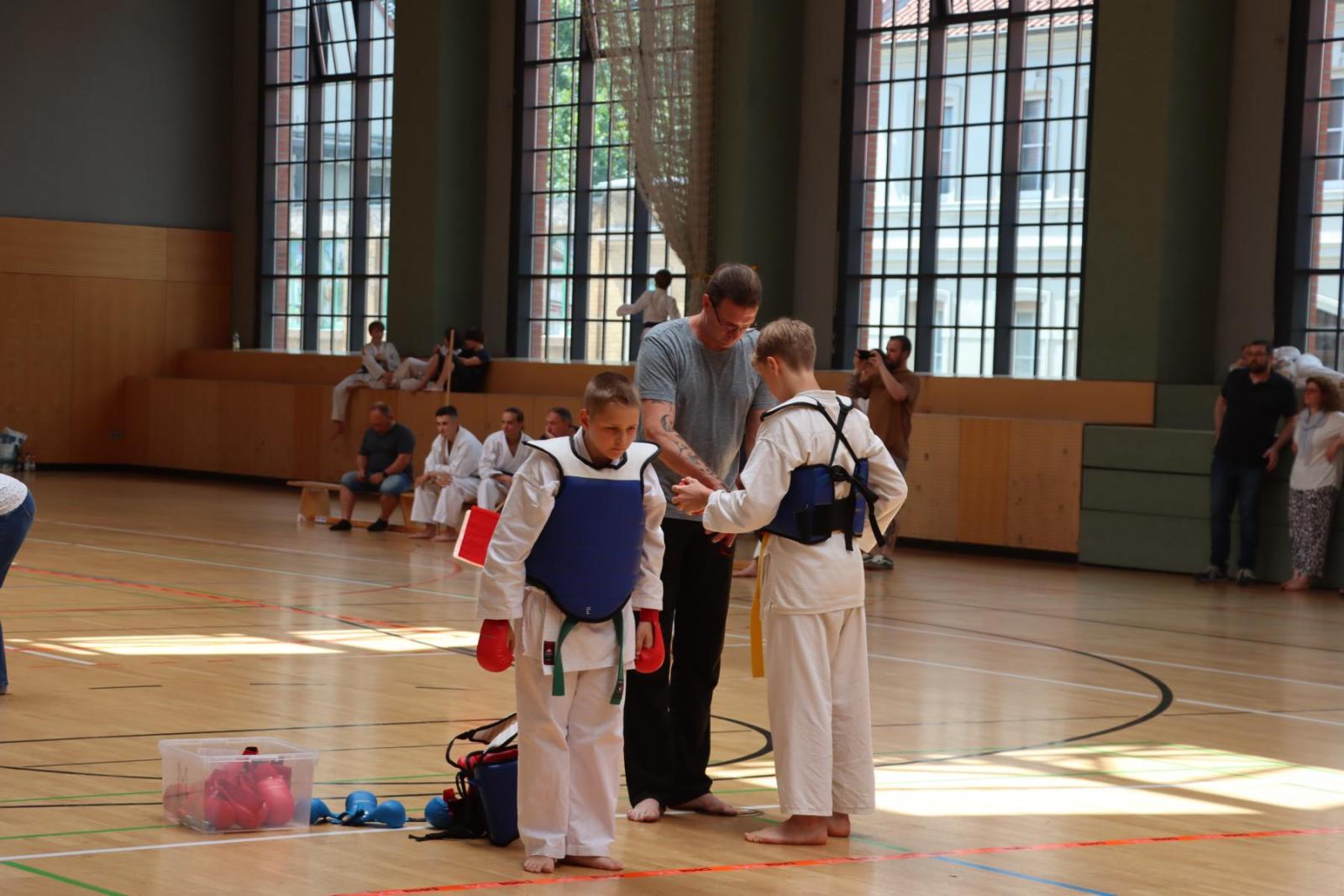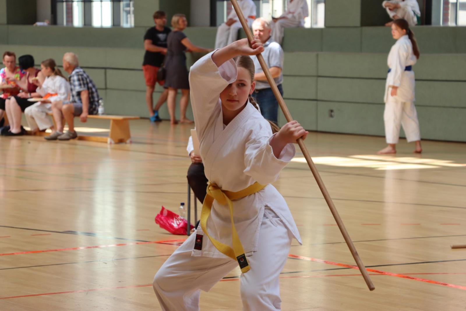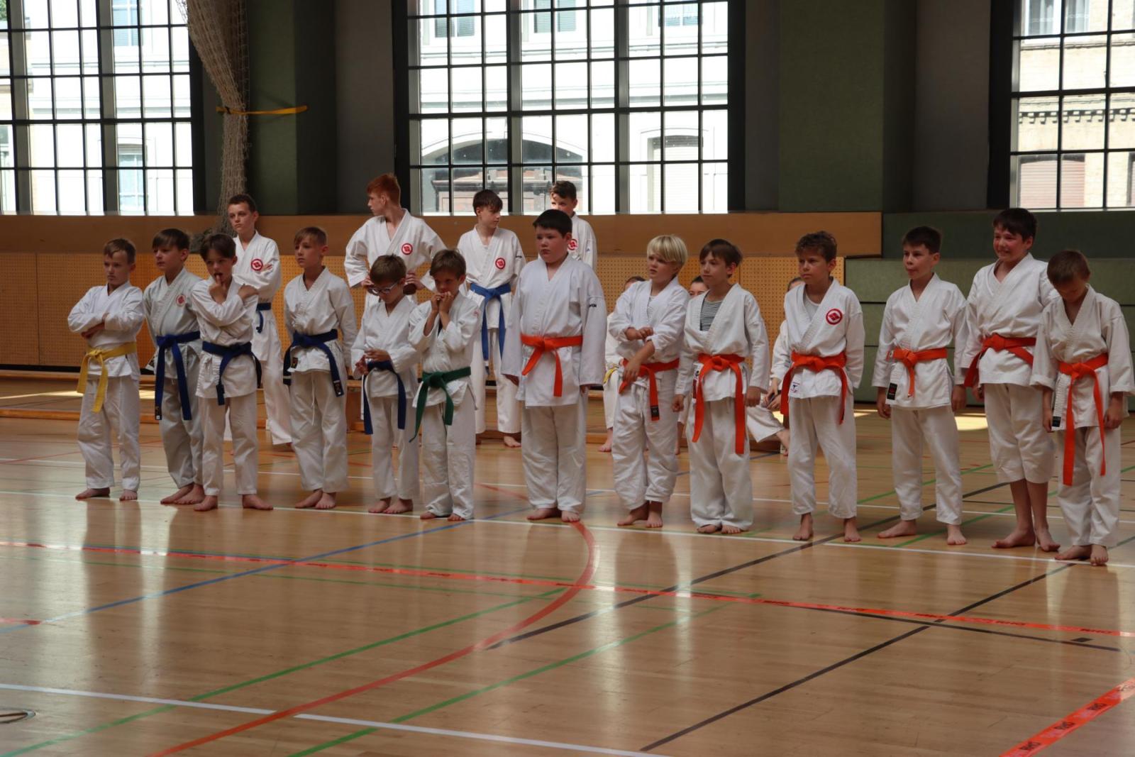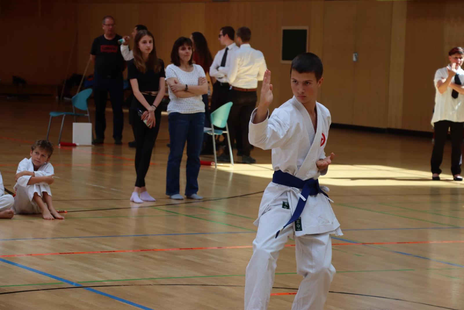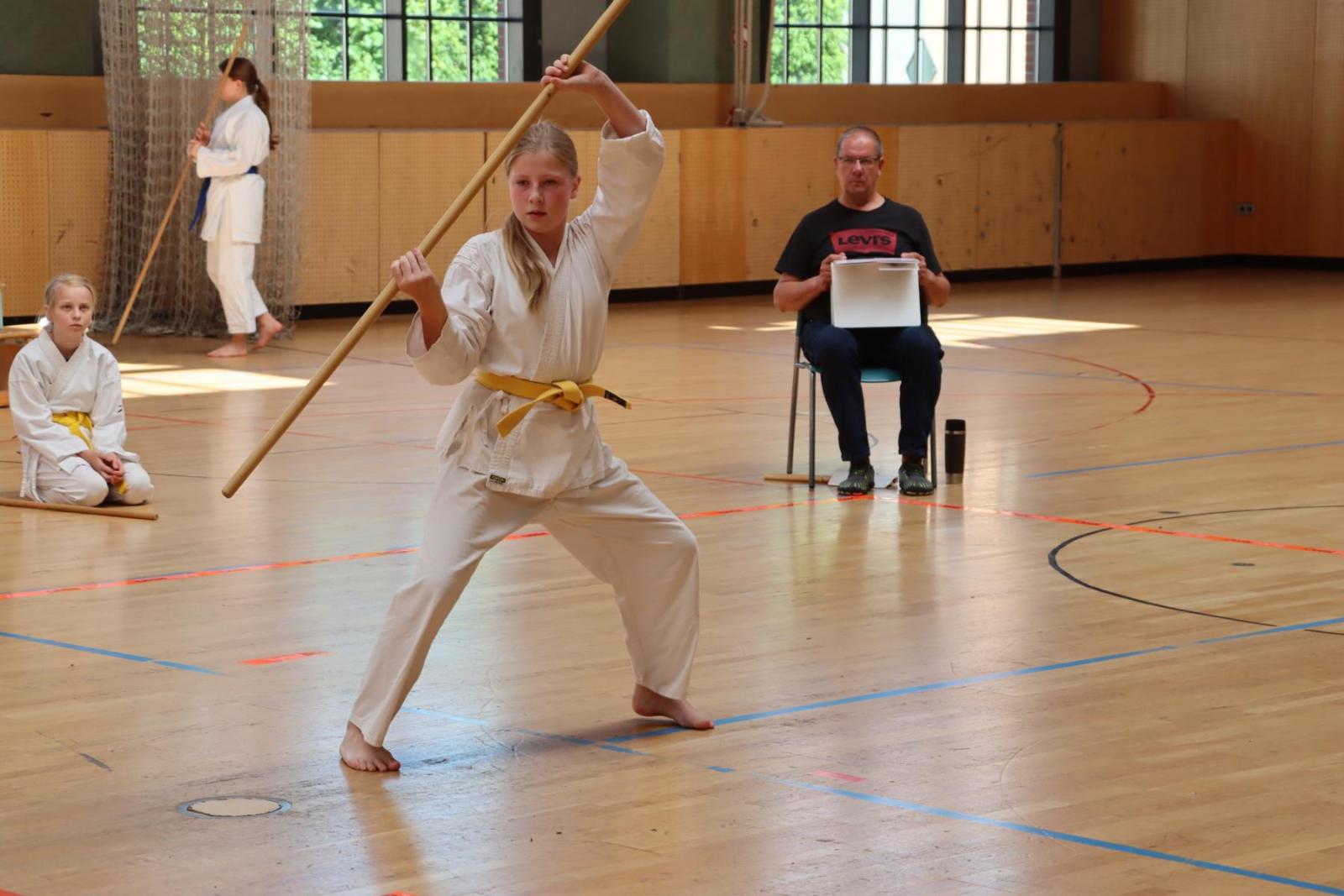 Die Kinder- und Jugendlichen konnten ihre erlernten Fähigkeiten von den Kampfrichtern in verschiedenen Disziplinen bewerten lassen. So gab es die Disziplinen Karate-Kata, Bo-Kata und Kumite.