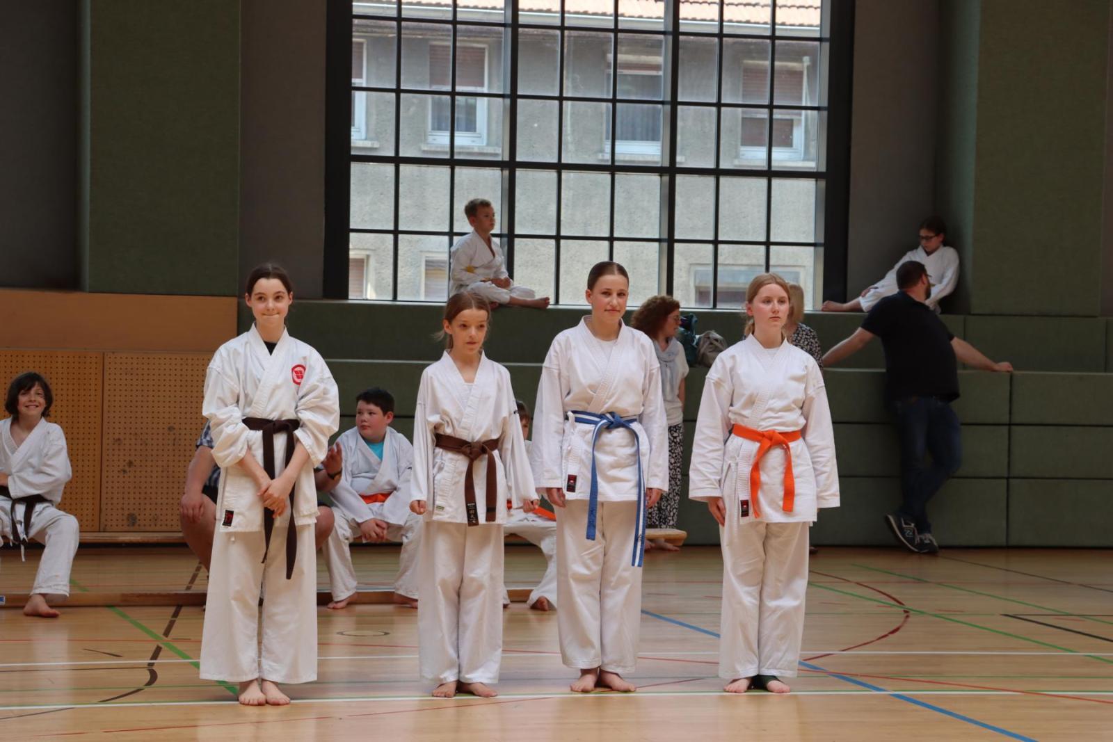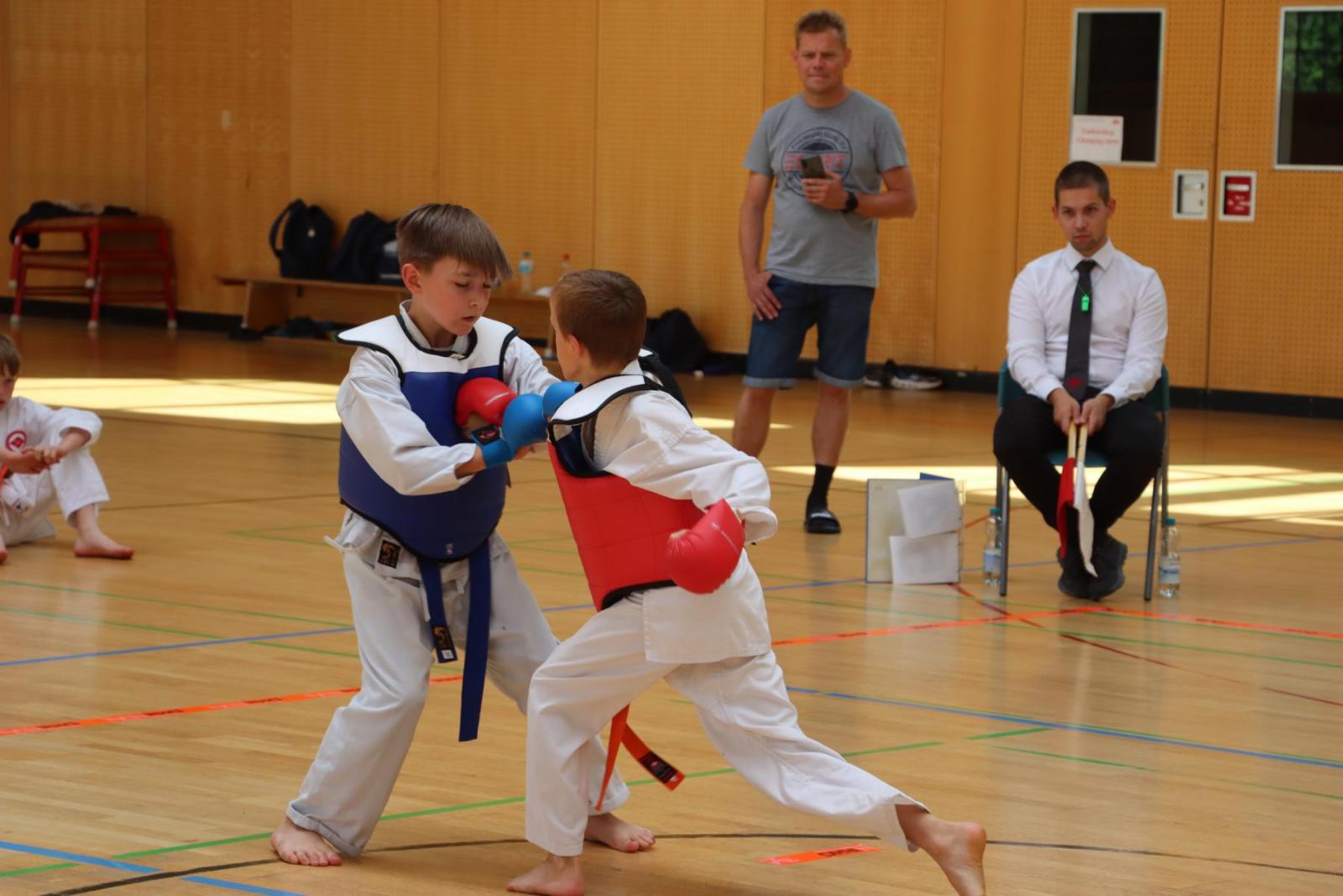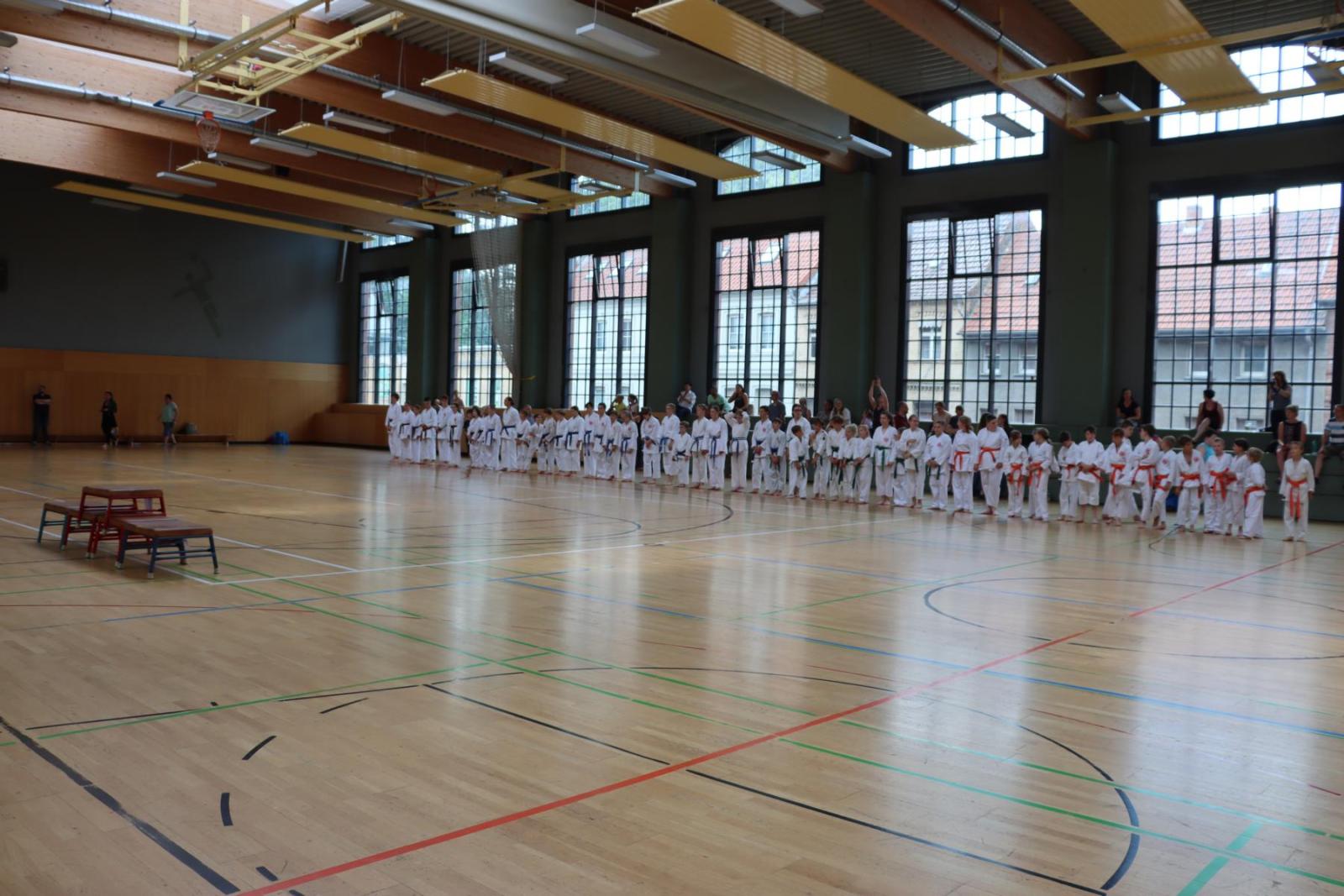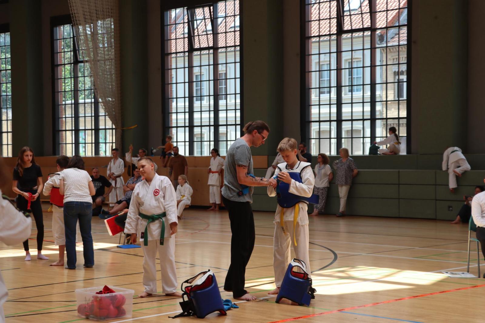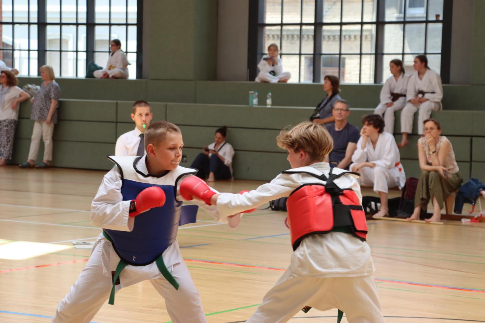 Die Kinder- und Jugendlichen konnten ihre erlernten Fähigkeiten von den Kampfrichtern in verschiedenen Disziplinen bewerten lassen. So gab es die Disziplinen Karate-Kata, Bo-Kata und Kumite.