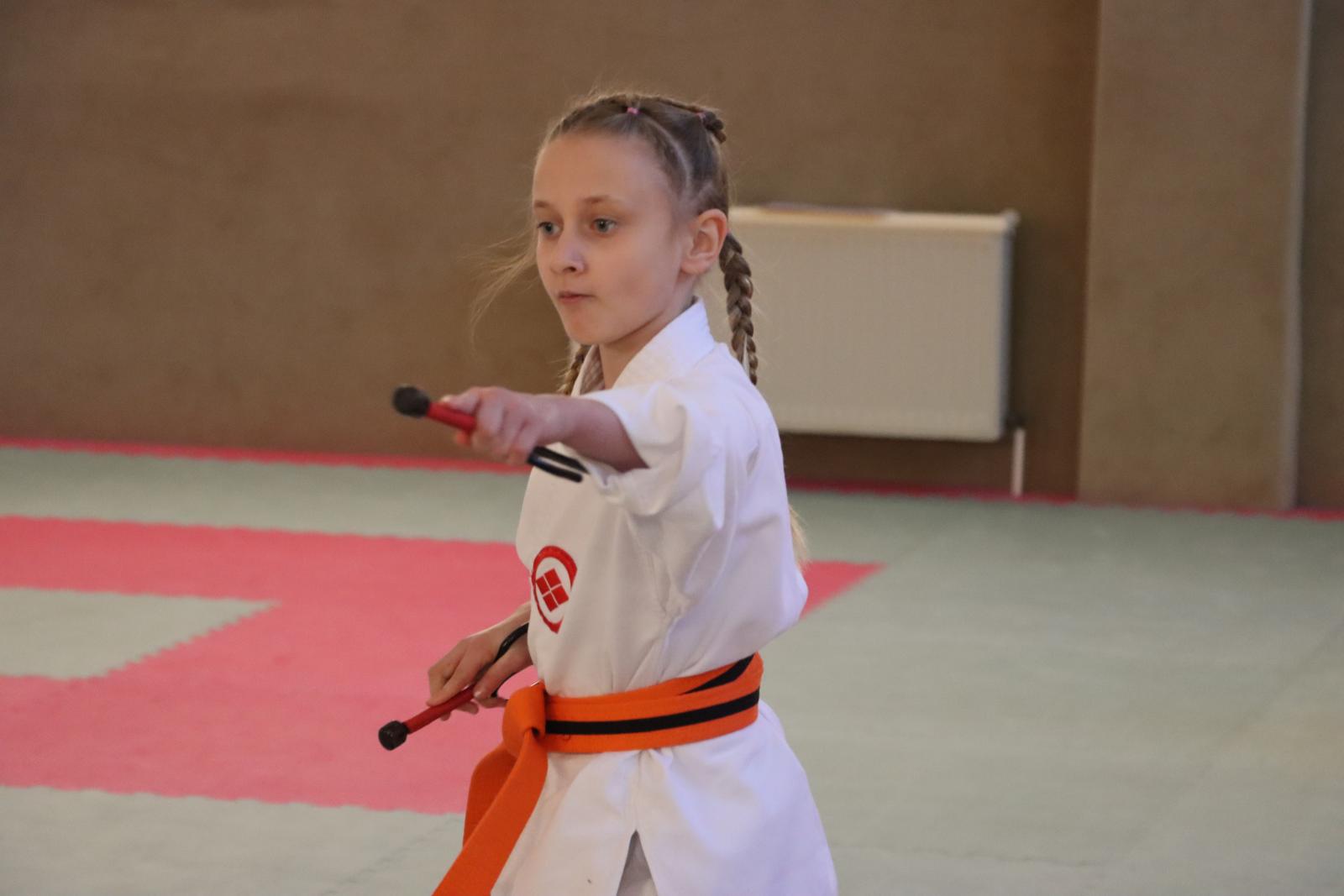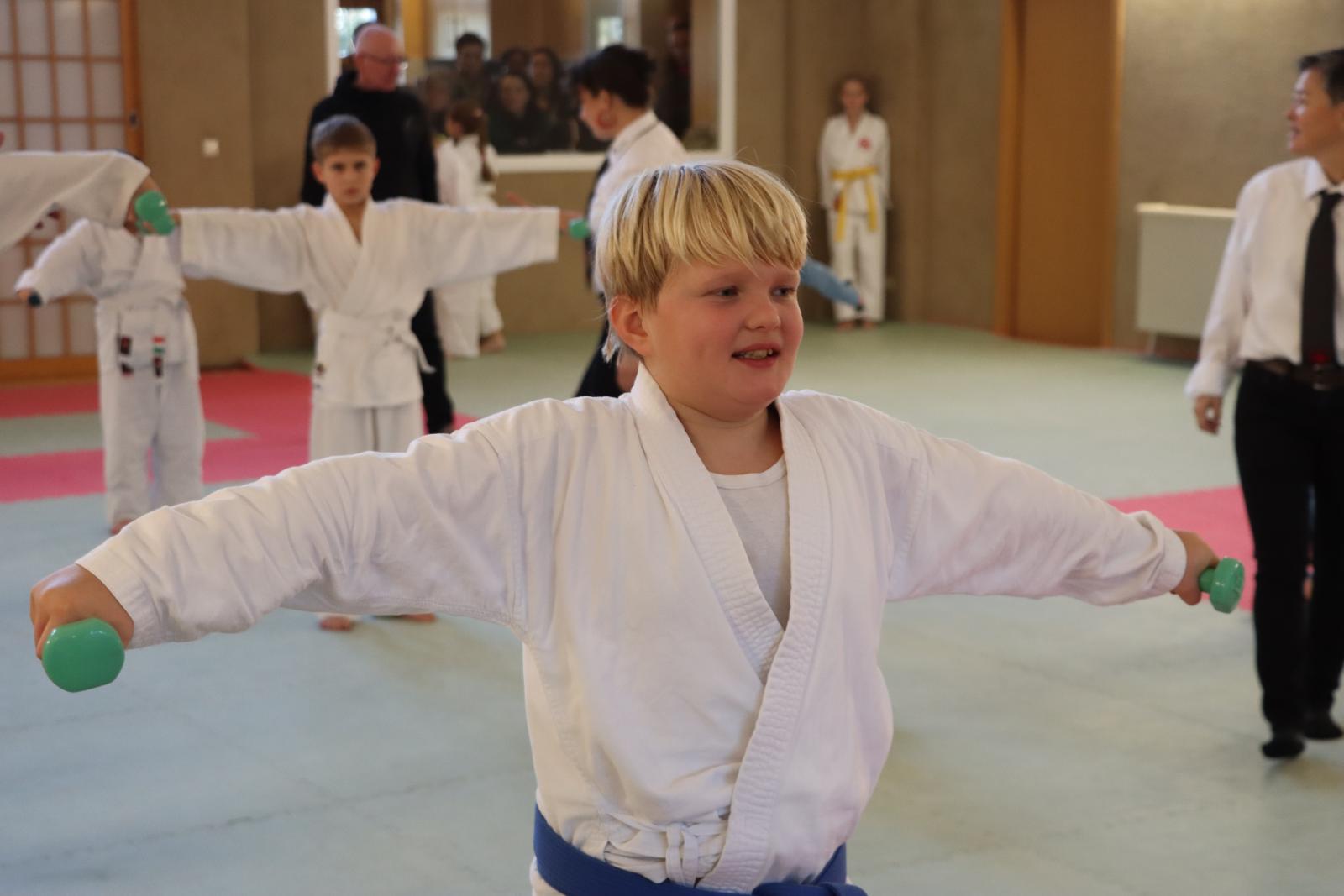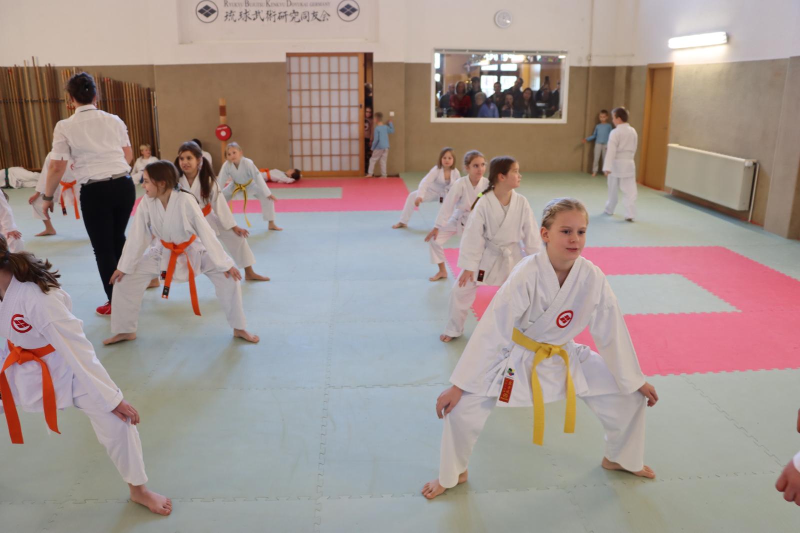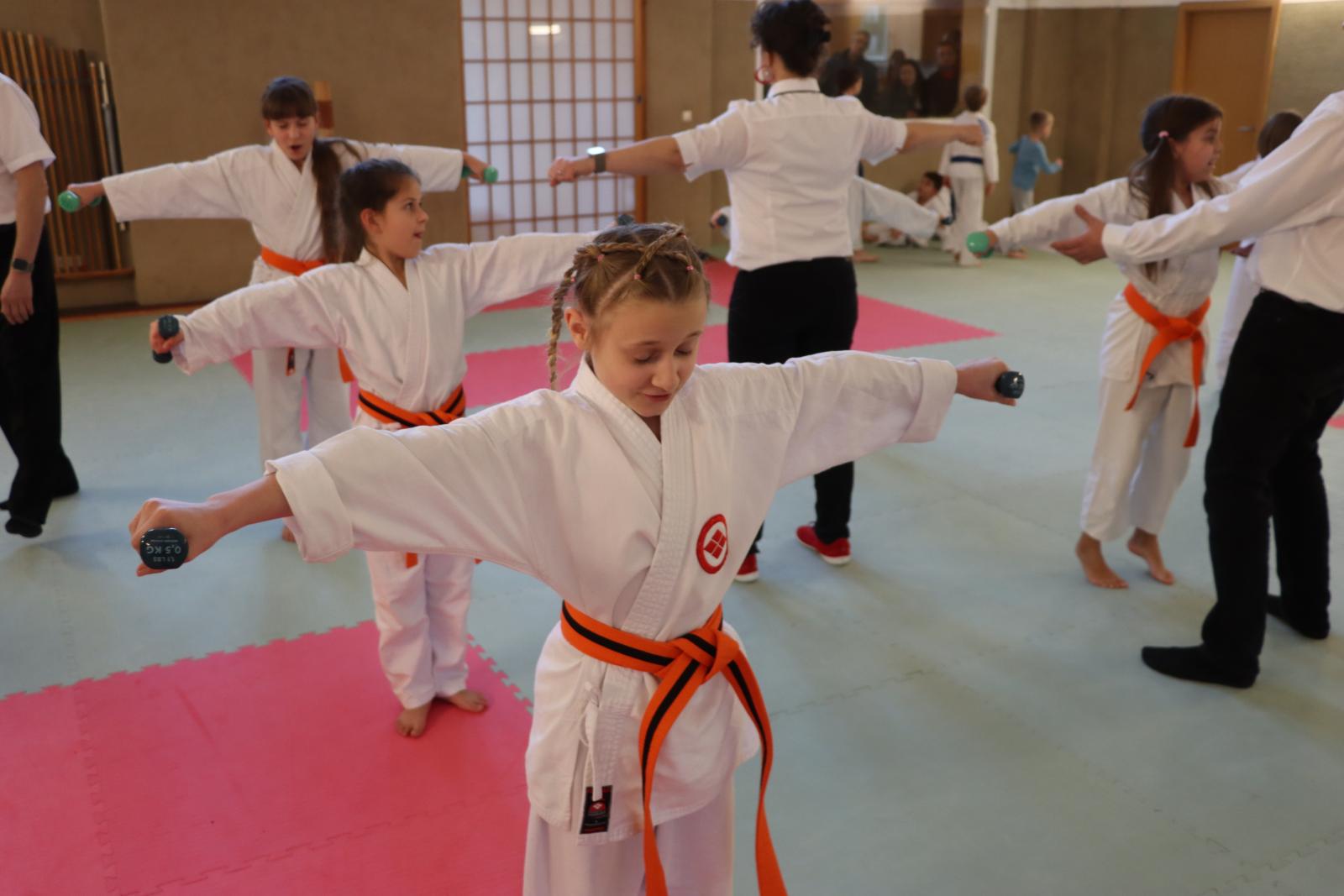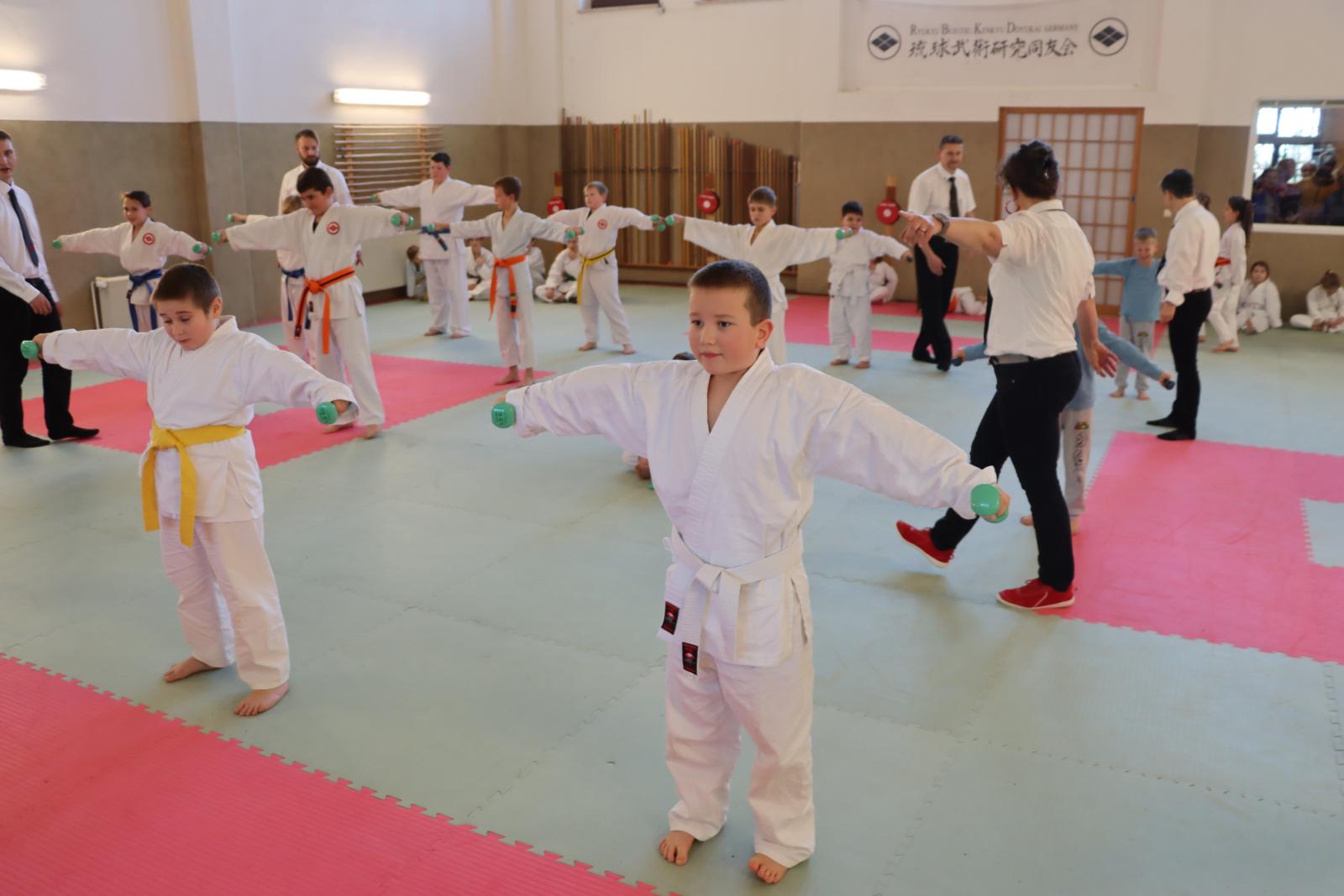 Das Highlight des Turniers war die Abschlussdisziplin „Stärkster Karateka“. Hier hatten auch unsere ganz neuen Mitglieder die Möglichkeit teilzunehmen – unabhängig davon, ob sie schon eine Kata in Karate, Bo oder Sai beherrschen. Die Kinder traten in zwei Gruppen (Jungen und Mädchen) gegeneinander an, wobei Alter und Gürtelfarbe keine Rolle spielten. Es war beeindruckend zu sehen, wie sowohl die Kleinsten als auch die Größten über sich hinauswuchsen. Dabei konnten die Zuschauer erleben, dass es nicht immer die Ältesten oder Erfahrensten waren, die den Sieg davontrugen.