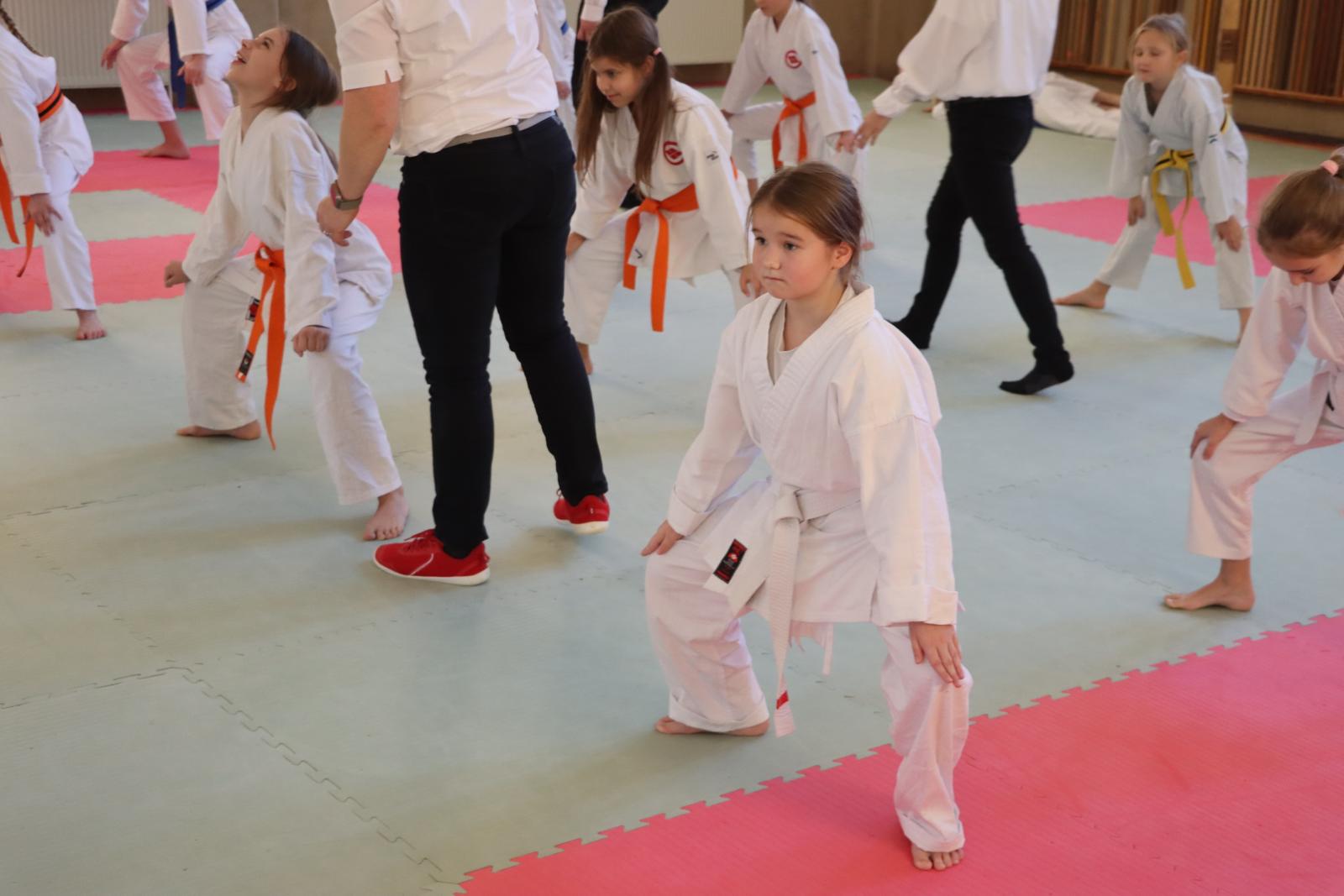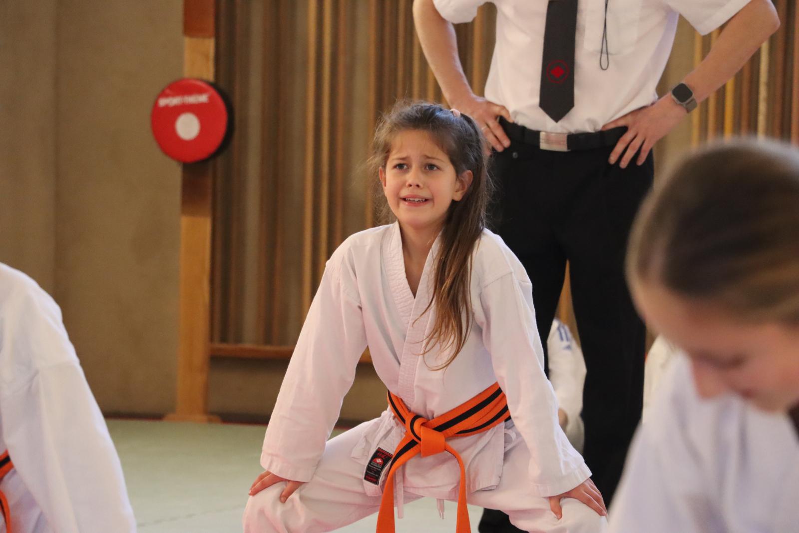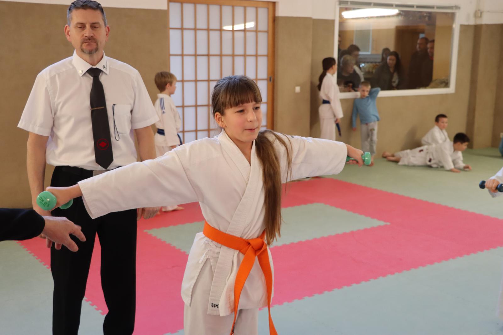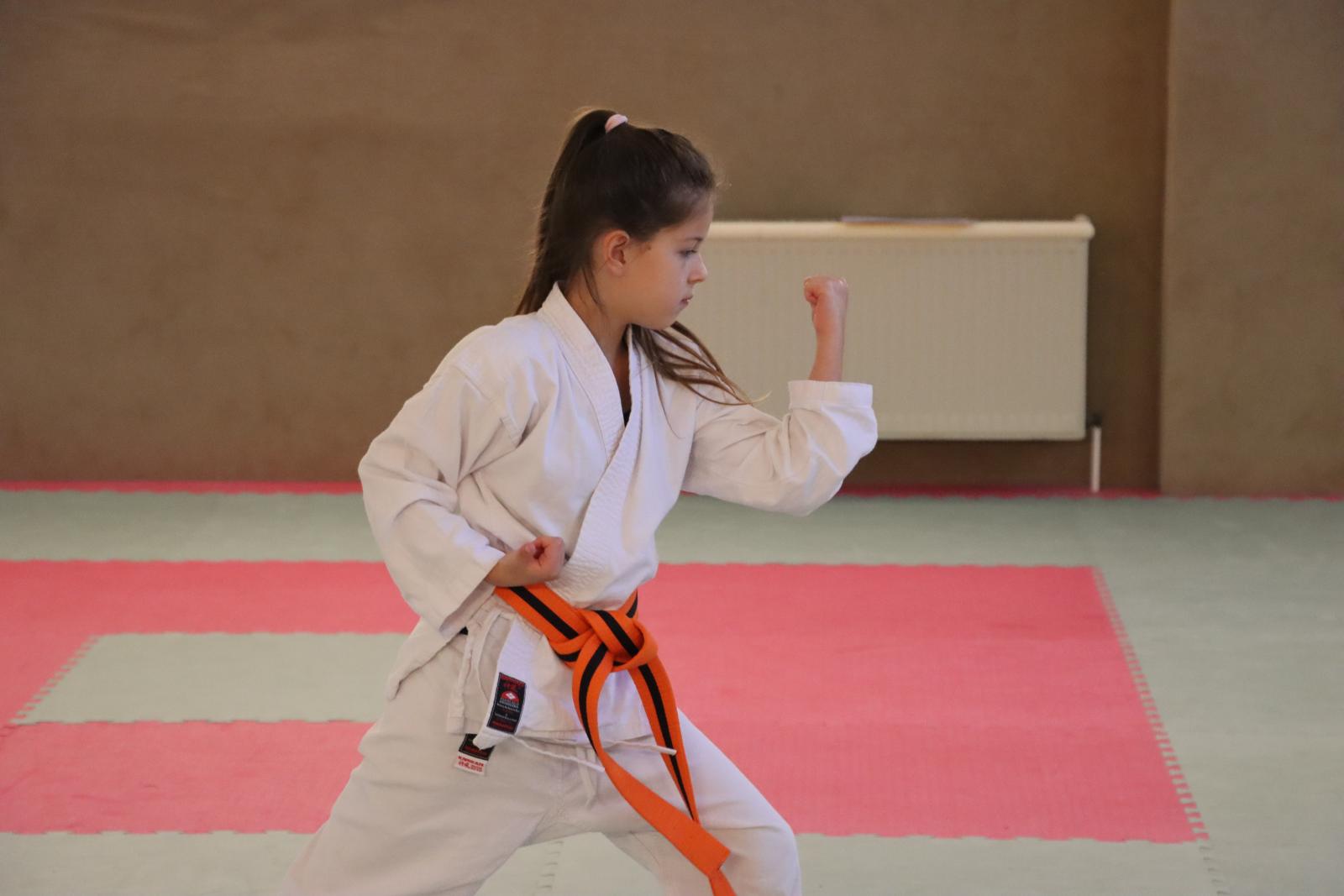 Das Highlight des Turniers war die Abschlussdisziplin „Stärkster Karateka“. Hier hatten auch unsere ganz neuen Mitglieder die Möglichkeit teilzunehmen – unabhängig davon, ob sie schon eine Kata in Karate, Bo oder Sai beherrschen. Die Kinder traten in zwei Gruppen (Jungen und Mädchen) gegeneinander an, wobei Alter und Gürtelfarbe keine Rolle spielten. Es war beeindruckend zu sehen, wie sowohl die Kleinsten als auch die Größten über sich hinauswuchsen. Dabei konnten die Zuschauer erleben, dass es nicht immer die Ältesten oder Erfahrensten waren, die den Sieg davontrugen.
