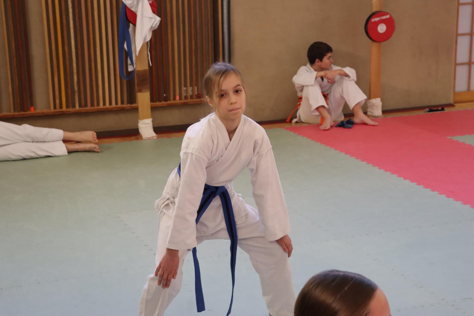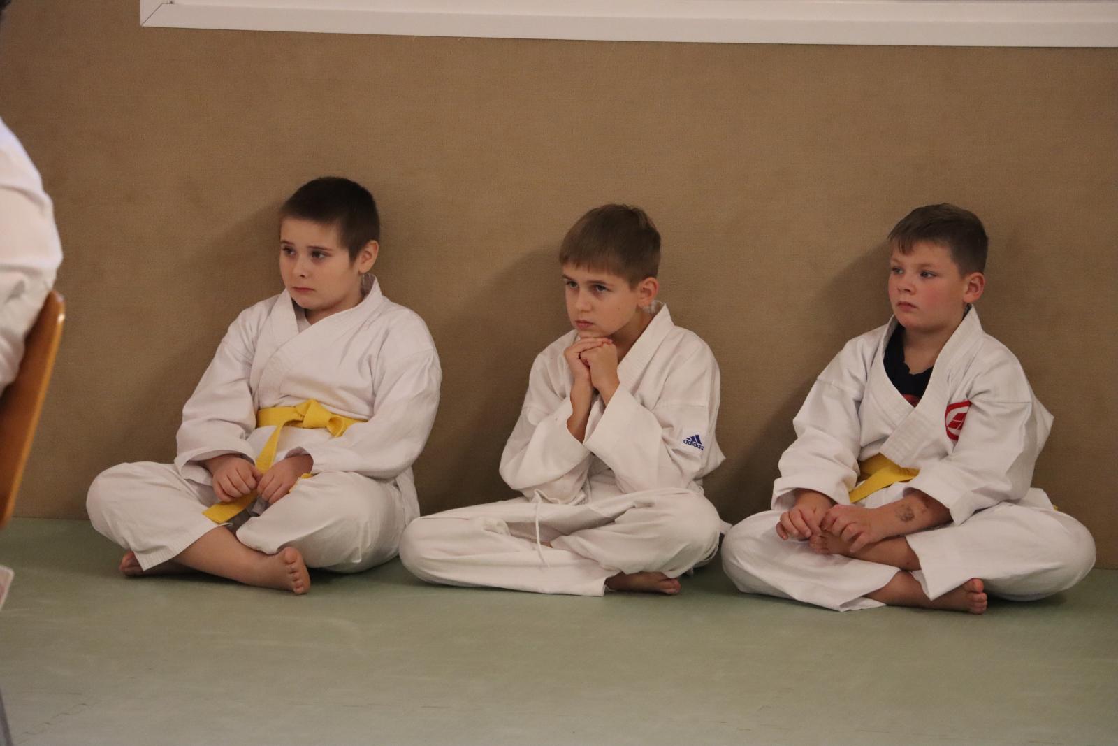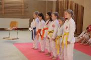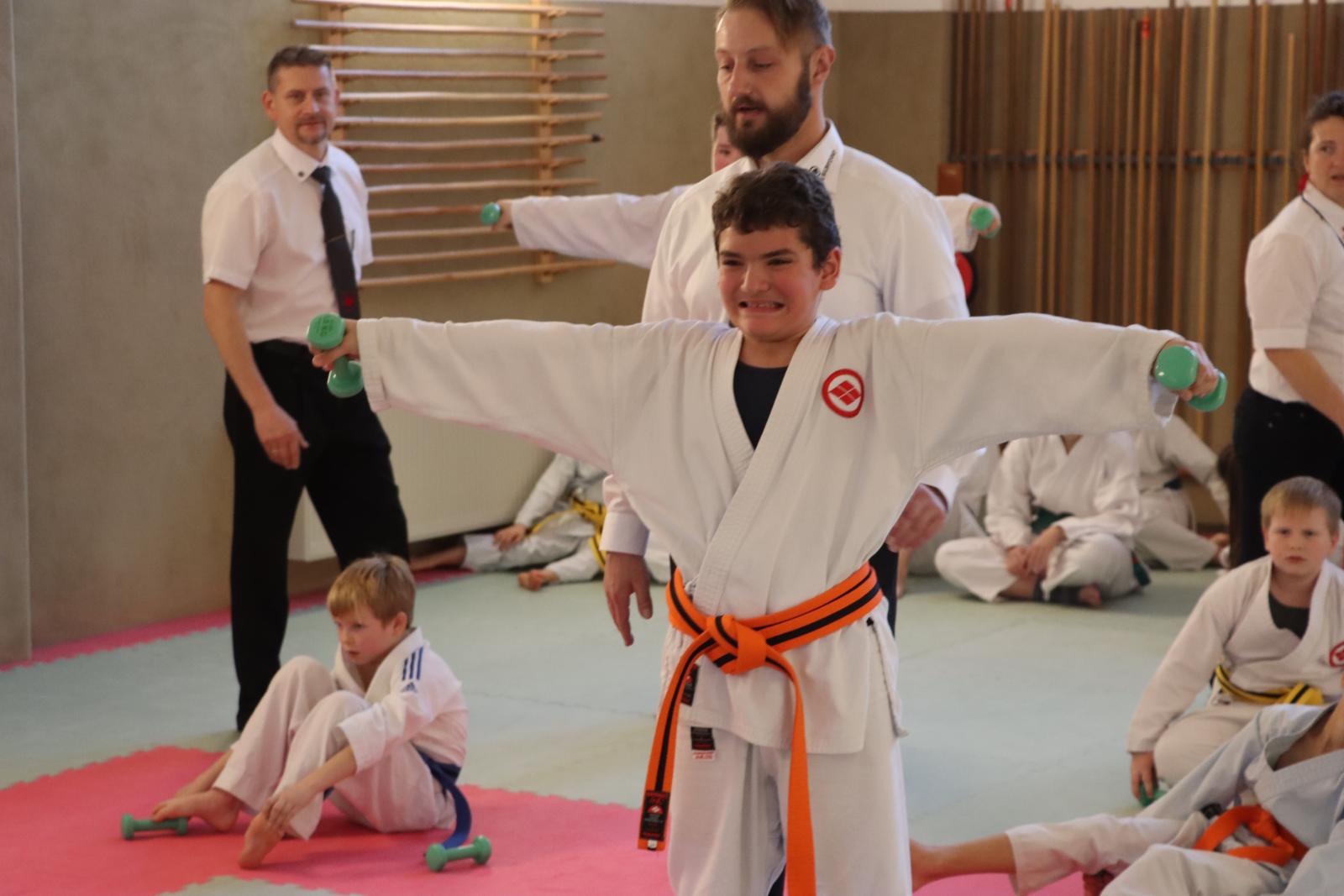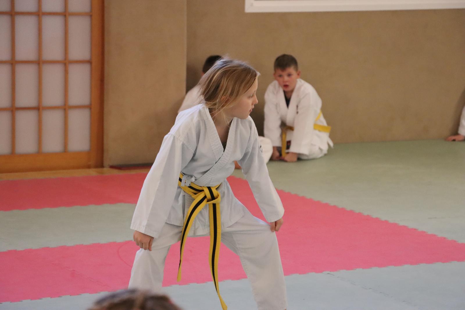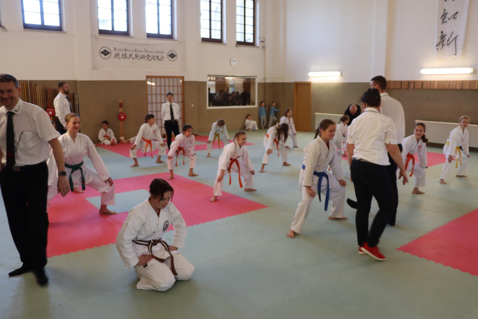 Das Highlight des Turniers war die Abschlussdisziplin „Stärkster Karateka“. Hier hatten auch unsere ganz neuen Mitglieder die Möglichkeit teilzunehmen – unabhängig davon, ob sie schon eine Kata in Karate, Bo oder Sai beherrschen. Die Kinder traten in zwei Gruppen (Jungen und Mädchen) gegeneinander an, wobei Alter und Gürtelfarbe keine Rolle spielten. Es war beeindruckend zu sehen, wie sowohl die Kleinsten als auch die Größten über sich hinauswuchsen. Dabei konnten die Zuschauer erleben, dass es nicht immer die Ältesten oder Erfahrensten waren, die den Sieg davontrugen.