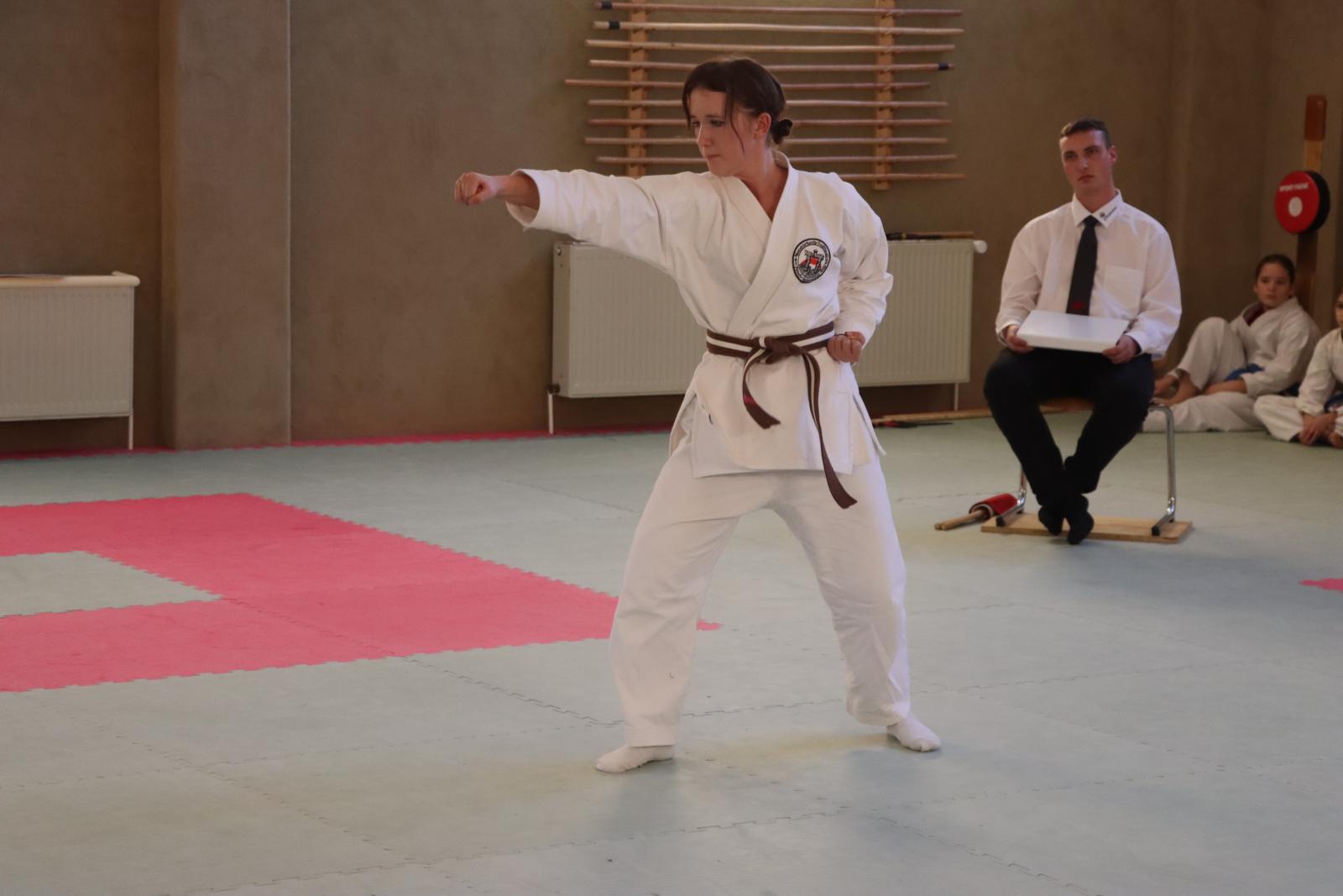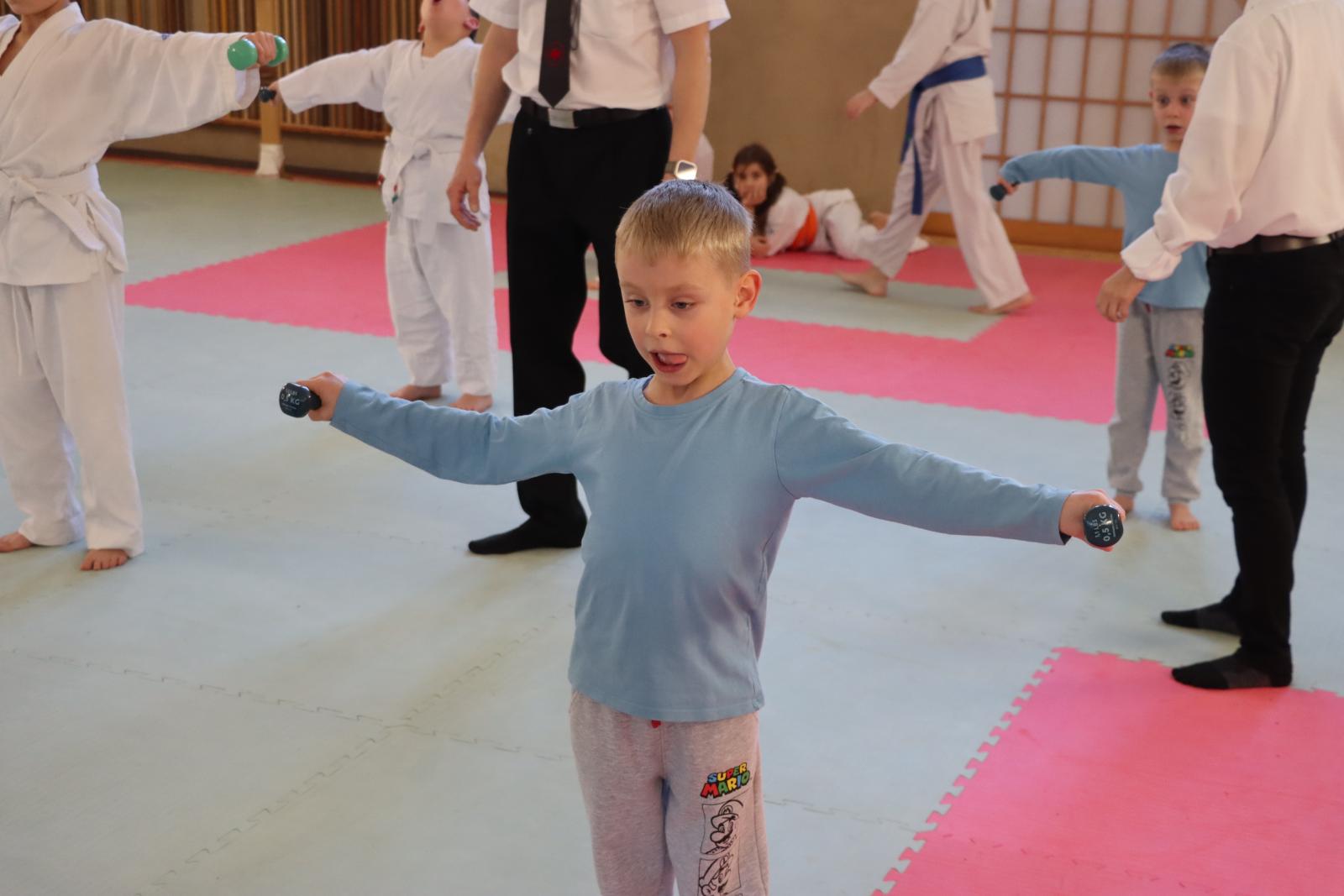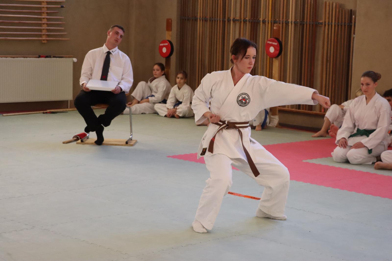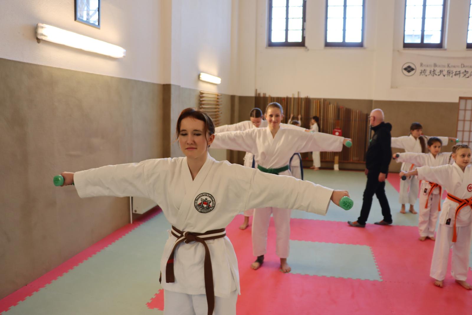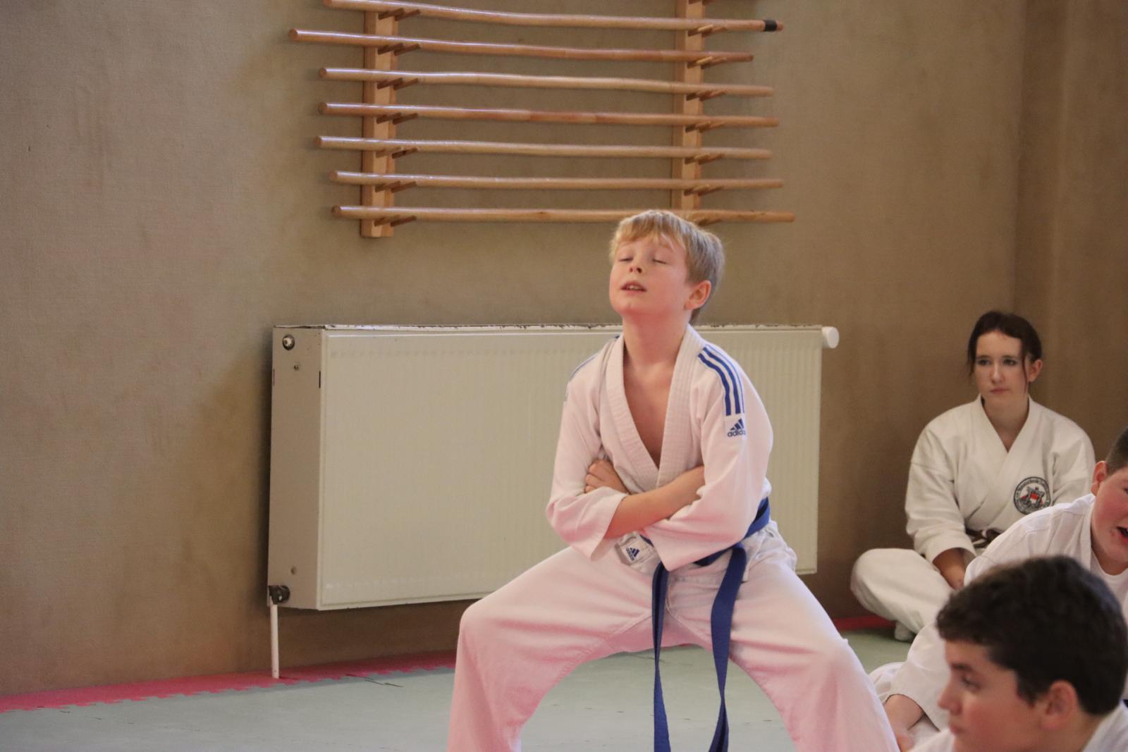 Das Highlight des Turniers war die Abschlussdisziplin „Stärkster Karateka“. Hier hatten auch unsere ganz neuen Mitglieder die Möglichkeit teilzunehmen – unabhängig davon, ob sie schon eine Kata in Karate, Bo oder Sai beherrschen. Die Kinder traten in zwei Gruppen (Jungen und Mädchen) gegeneinander an, wobei Alter und Gürtelfarbe keine Rolle spielten. Es war beeindruckend zu sehen, wie sowohl die Kleinsten als auch die Größten über sich hinauswuchsen. Dabei konnten die Zuschauer erleben, dass es nicht immer die Ältesten oder Erfahrensten waren, die den Sieg davontrugen.