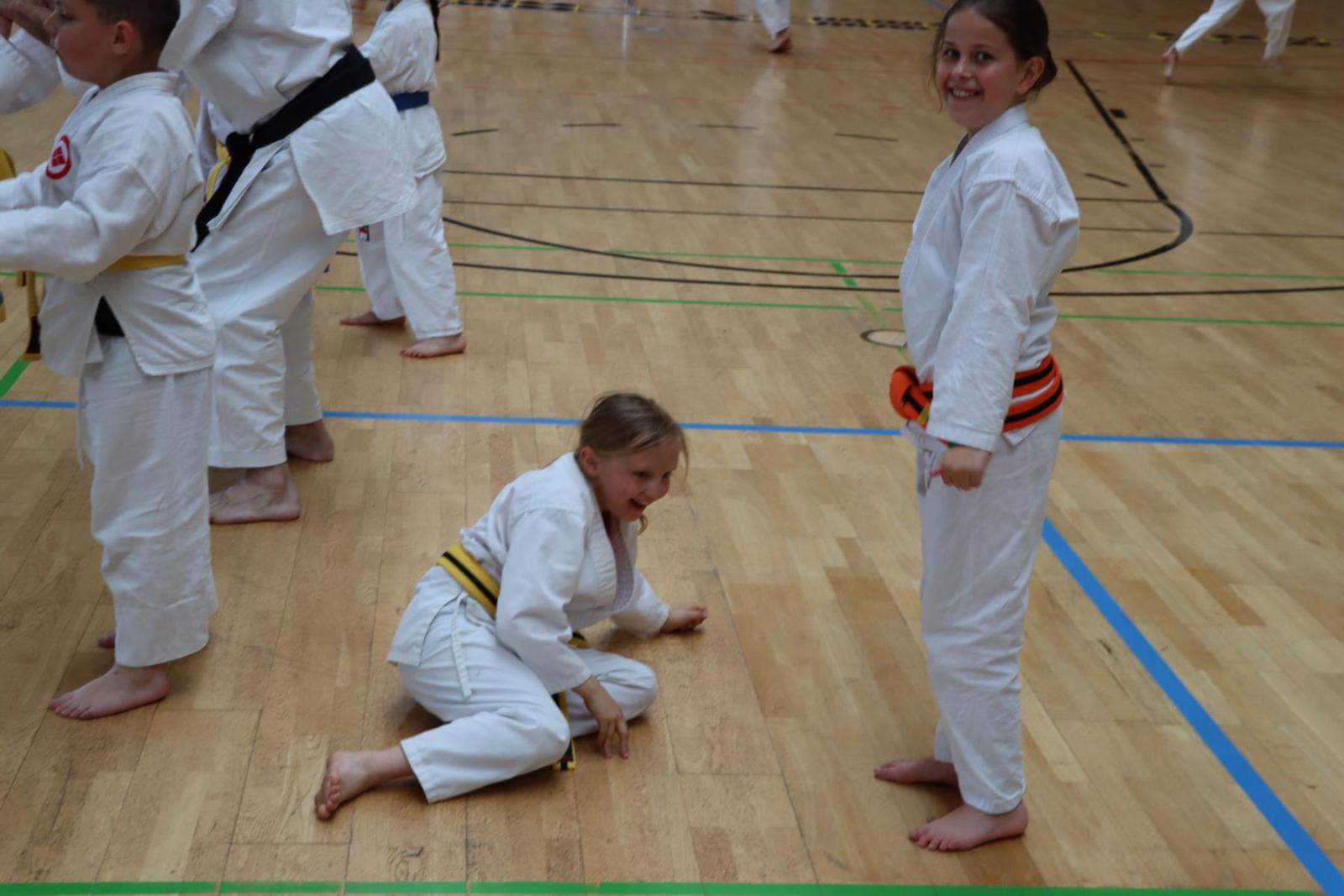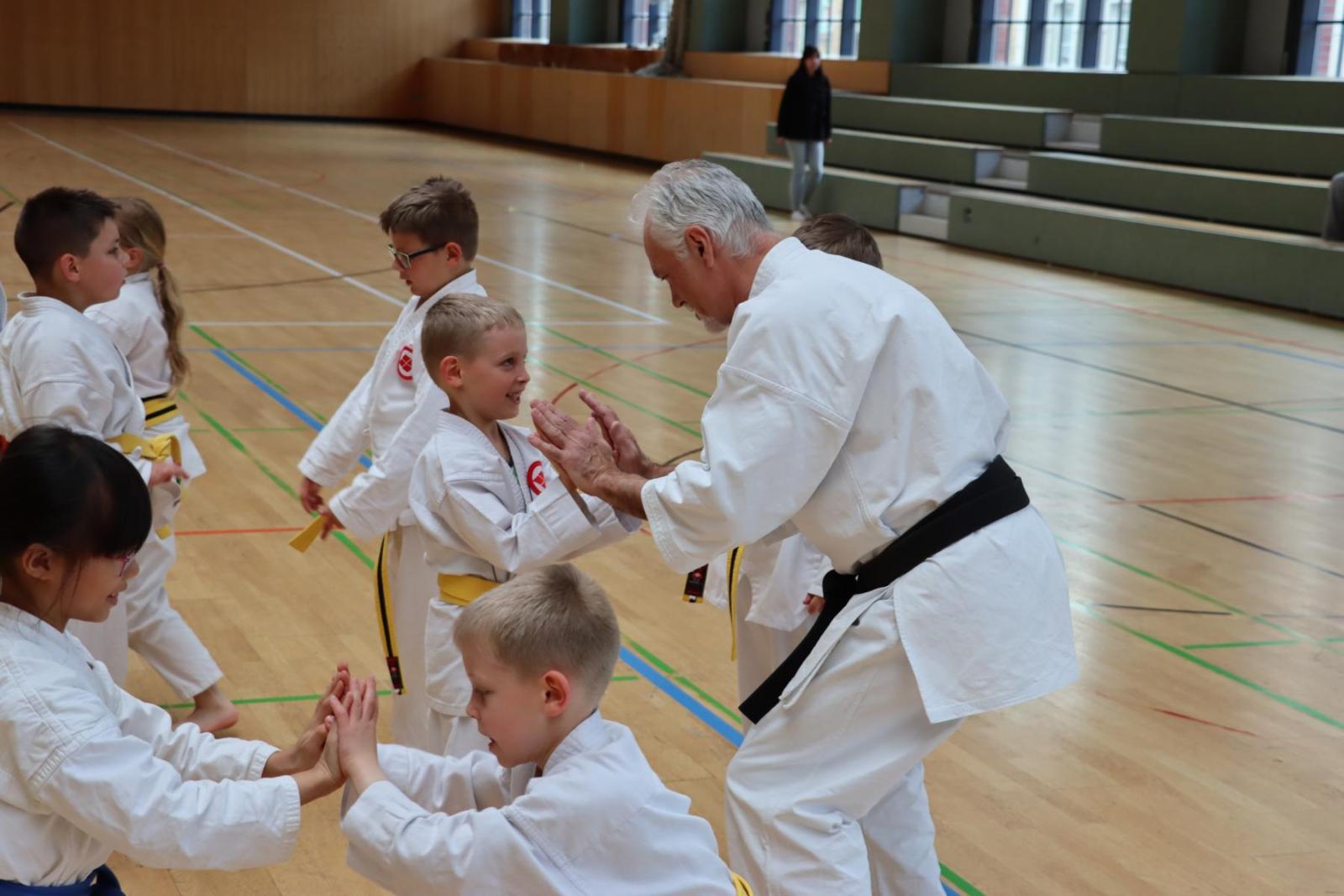 Am Samstag konnten die Kinder in verschiedenen Gruppen bei unterschiedlichen Schwarzgurten trainieren. Jeder Trainer setzte eigene Schwerpunkte, doch im Mittelpunkt standen Bewegung und vor allem der Spaß und davon gab es reichlich! Nicht nur die Kinder hatten ihren Spaß, auch die Trainer und Zuschauer kamen voll auf ihre Kosten.