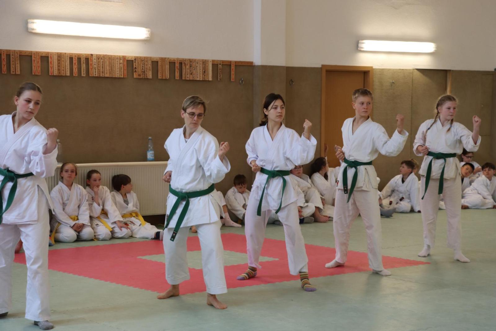 In einem zweistündigen Training wurden 30 Prüflinge von unseren Senseis Ralf, Kai, Yvonne und Stefan auf die anschließende Kyu-Prüfung vorbereitet. Alle haben die Prüfung bestanden und freuen sich nun auf ihre neue Gürtelfarbe.