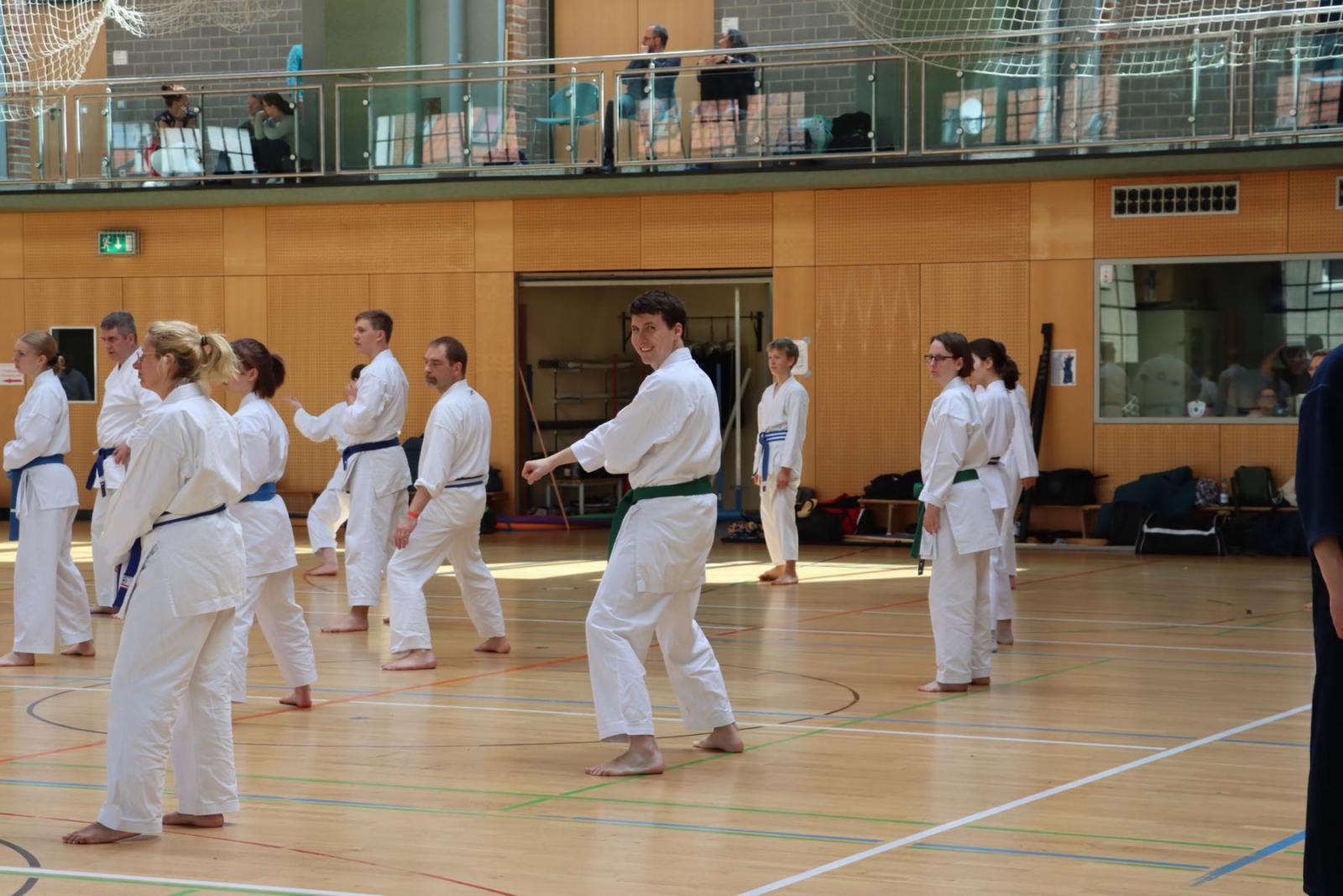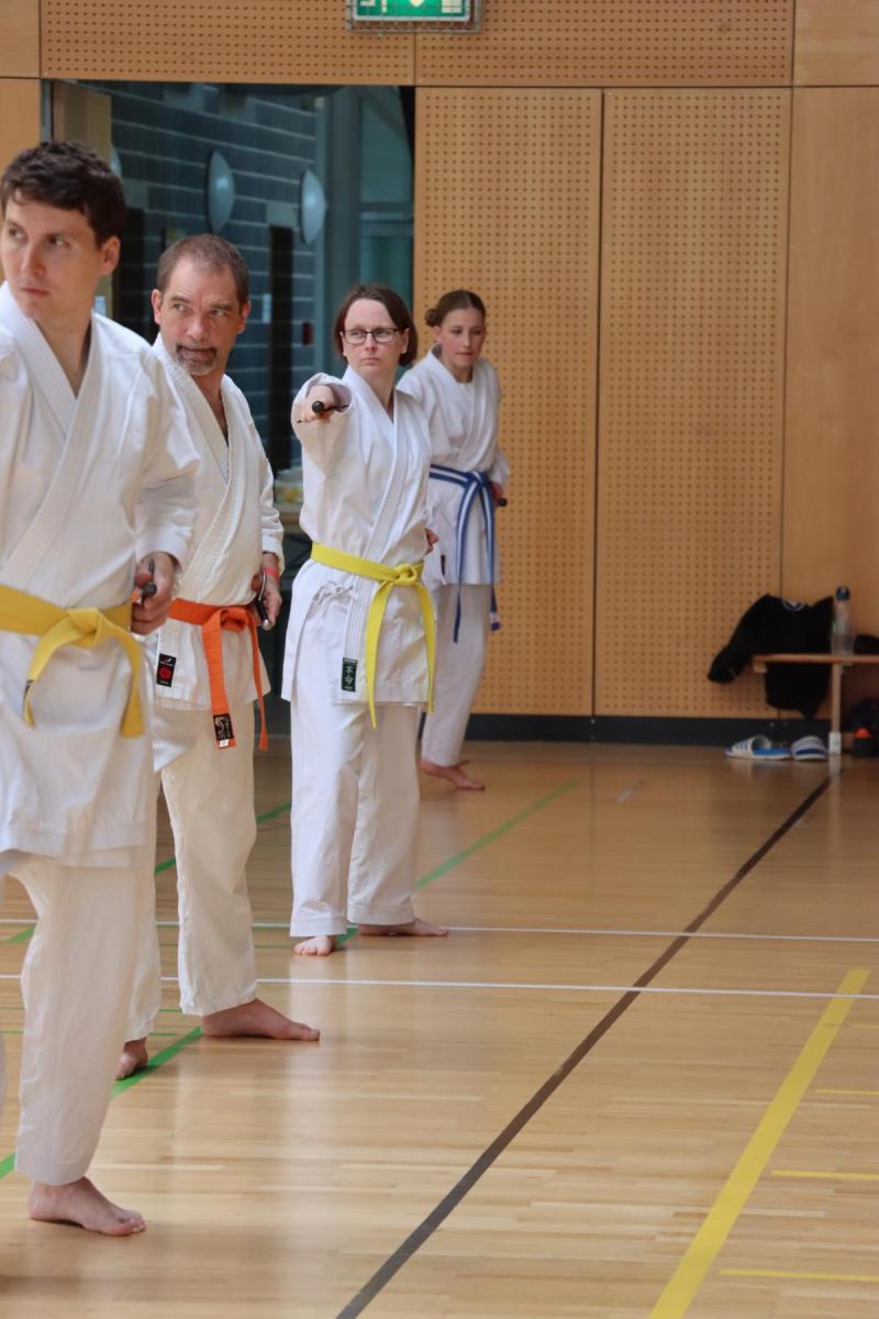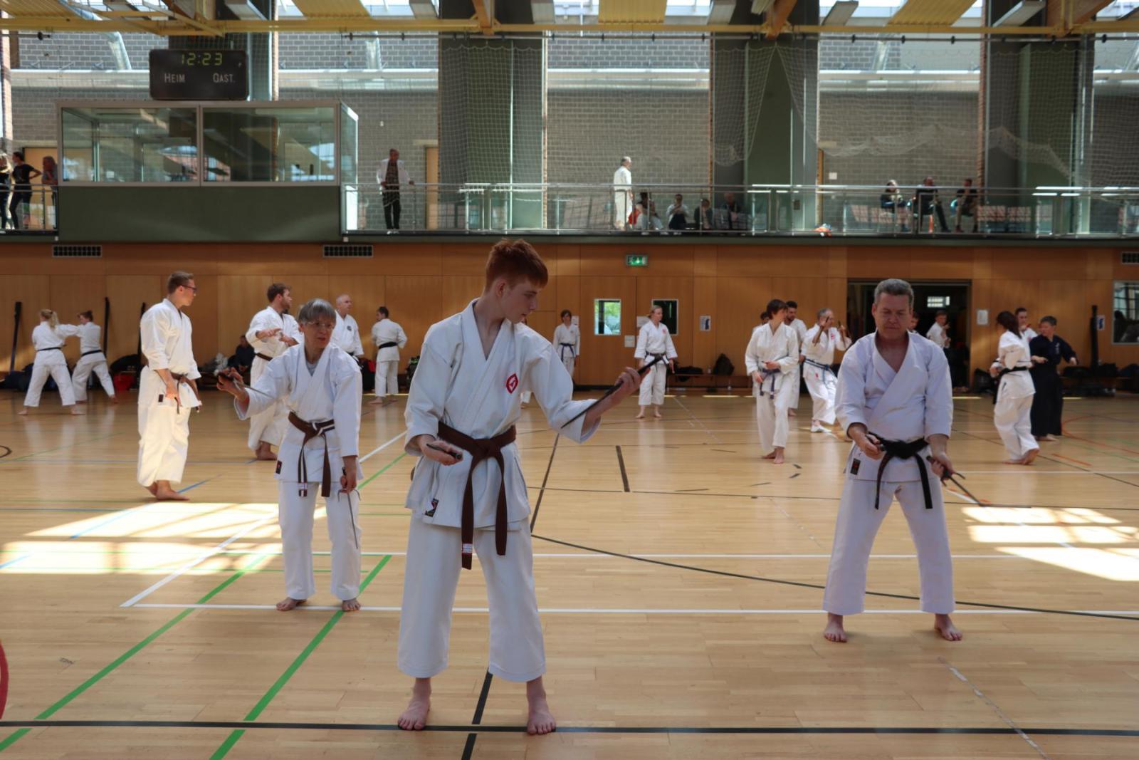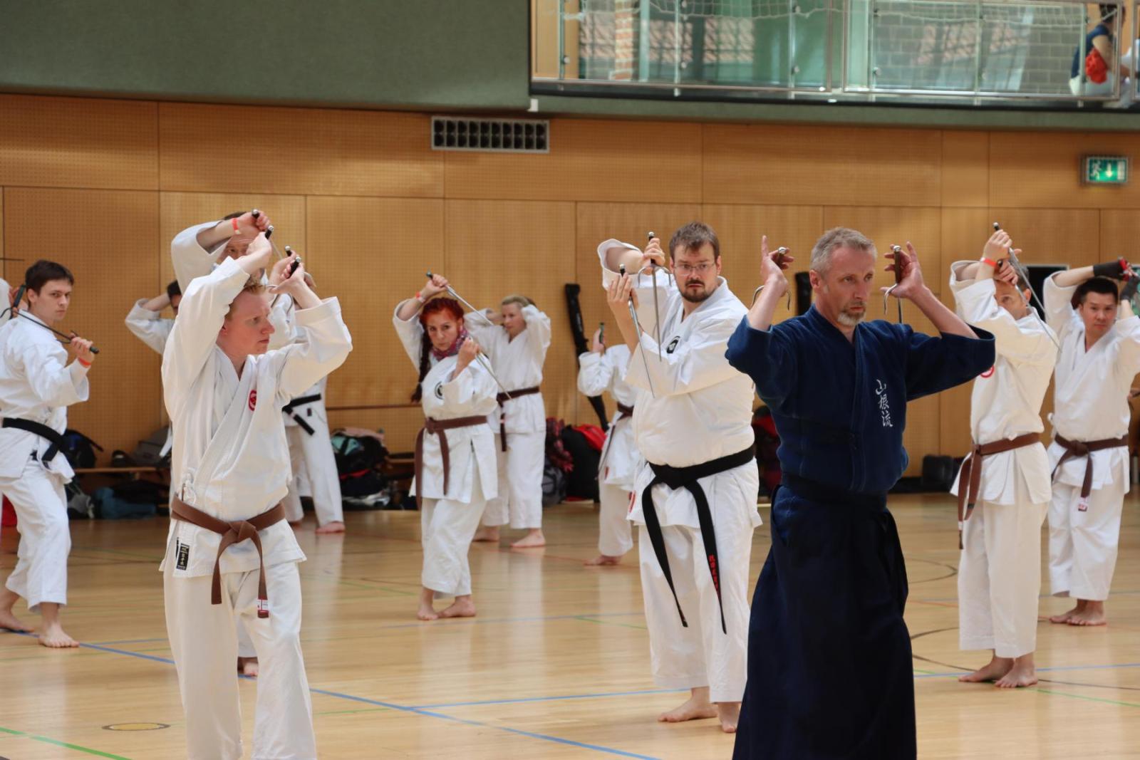 Vor dem Wochenendlehrgang fanden am Freitag den ganzen Tag im OSHIRO Dojo Aschersleben DAN Prüfungen im Karate und Kobujutsu statt. Fast 40 Prüflinge aus ganz Europa stellten sich den Dan-Prüfungen. Aus unserem Dojo haben Frank Rostalski und Kay Pohl die Prüfung zum 2. Dan im Yamanni Chinen Ryu Kobujutsu und Katrin Smolin zum 1. Dan Shima Ha Shorin Ryu Karate bestanden.