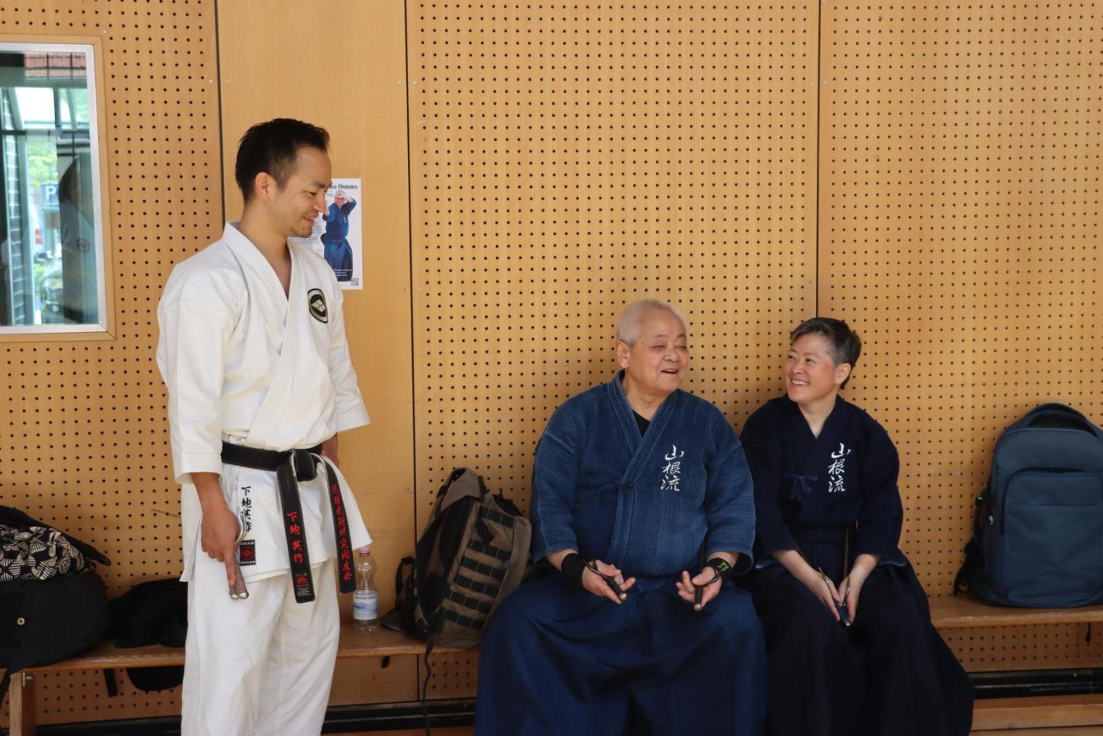 Zwischen dem praktischen Training erklärte Shihan Oshiro den richtigen Einsatz des Körpers um sich effizient und schnell bewegen zu können und ging auf einzelnen Techniken und deren Anwendungen ein. Besonders interessant waren auch die Gespräche zwischen den Trainingseinheiten mit dem Karategroßmeister.