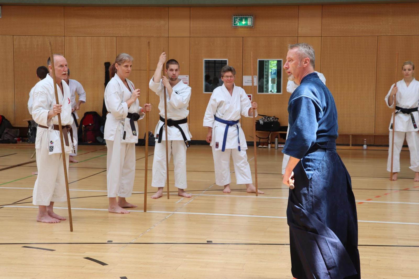Zum Wochenendlehrgang kamen die Schüler aus den verschiedensten Ecken der Welt nach Aschersleben. Hier vermittelte Shihan Oshiro, unterstützt von Sensei Ralf Smolin, Sensei Kai Gawlitta und Sensei Yvonne Fiala sowie von den Senseis Hiro Obara (USA) und Eisaku Shimoji (Japan) den Lehrgangsteilnehmern Karatetechniken sowie Karate- und Kobujutsu Kata.