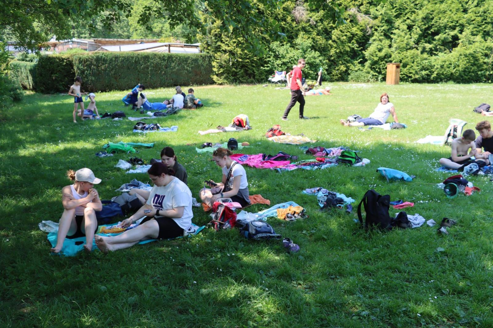 Unser Ziel war der idyllische Bremer Teich, der uns mit seiner ruhigen Atmosphäre und seiner natürlichen Schönheit lockte. Wir kämpften uns durch dichte Wälder und über schmale Pfade, immer dem Ziel entgegen. Die Landschaft bot uns dabei stets neue und faszinierende Ausblicke, die uns den Atem raubten und unsere Strapazen vergessen ließen. Endlich erreichten wir den Bremer Teich, der uns mit seinem klaren Wasser begeisterte. Ohne zu zögern sprangen die Kinder und einige mutige Erwachsene ins erfrischende Wasser und genossen die wohlverdiente Abkühlung nach der anstrengenden Wanderung. Die Freude und der Spaß, den wir dabei hatten, waren einfach unbeschreiblich.
