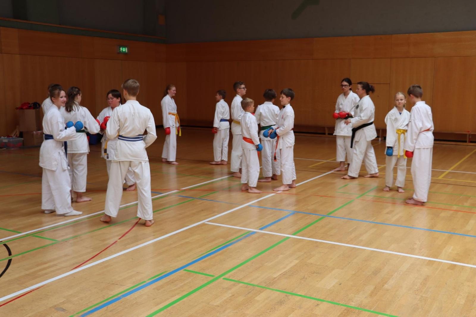 Am Samstag fand ein Kinder- und Jugendlehrgang statt. Die Kinder- und Jugendlichen wurden nach Alter in vier Gruppen eingeteilt. Die Gruppen hatten zeitgleich bei vier verschiedenen Trainern unterschiedliches Training. Jeder Trainer gestaltete das Training anders. Von Spaß bis Anstrengung war alles dabei.