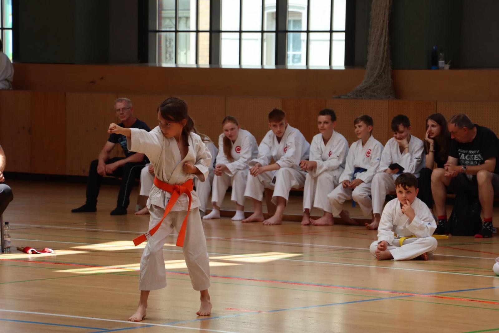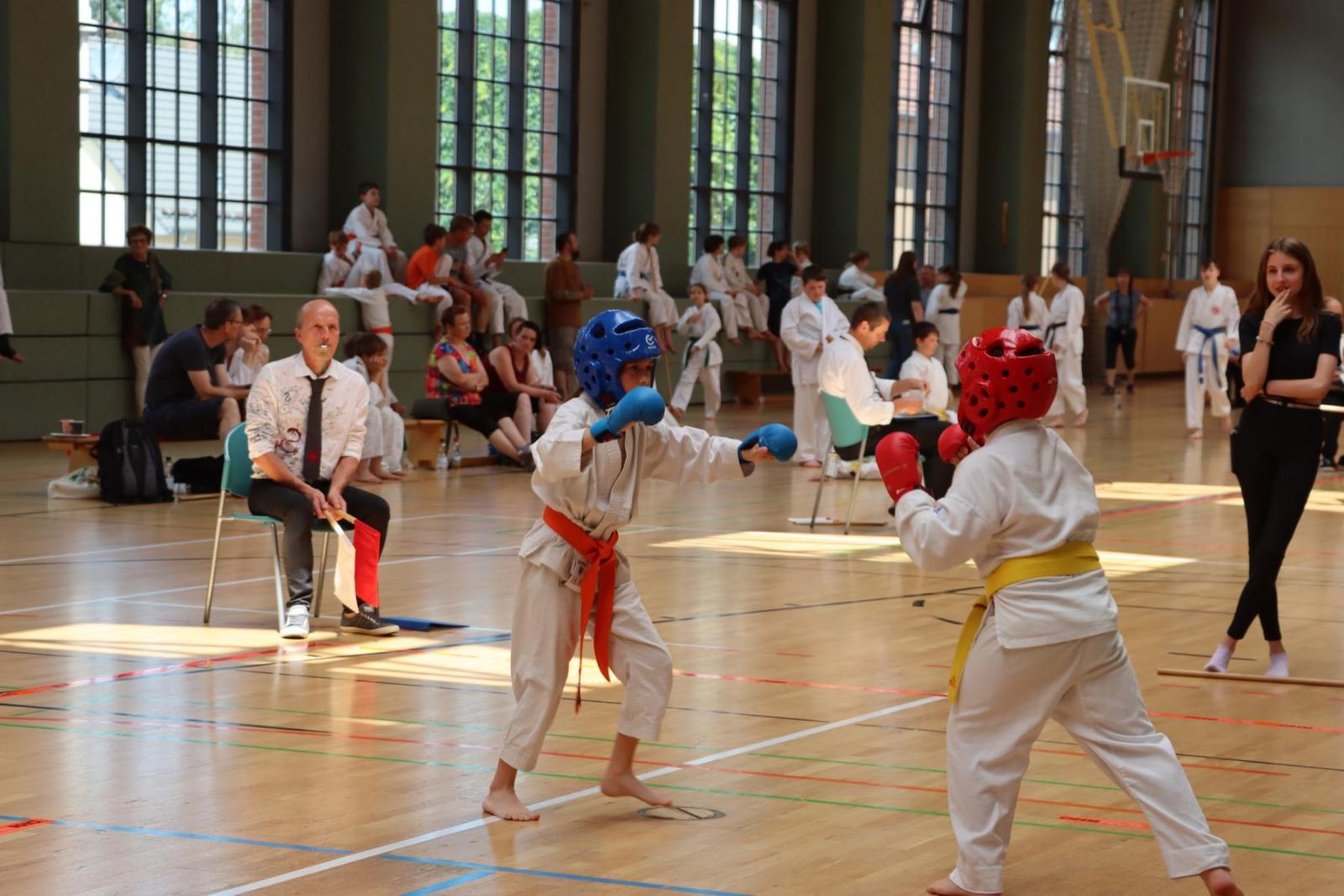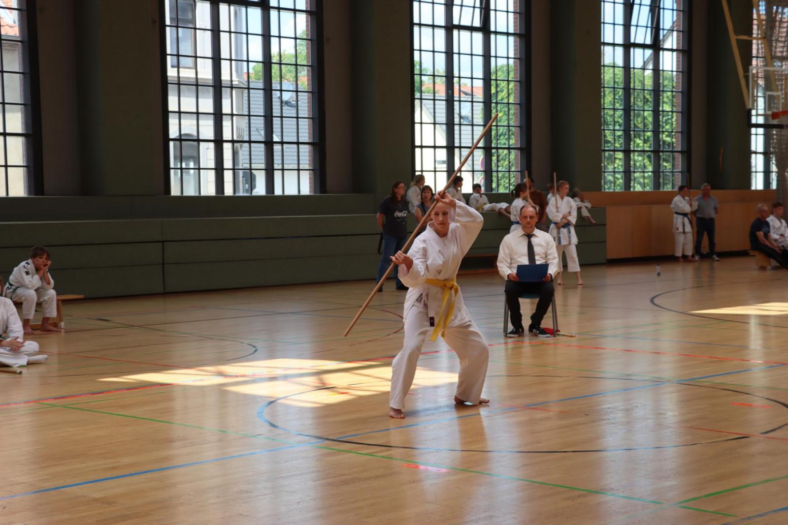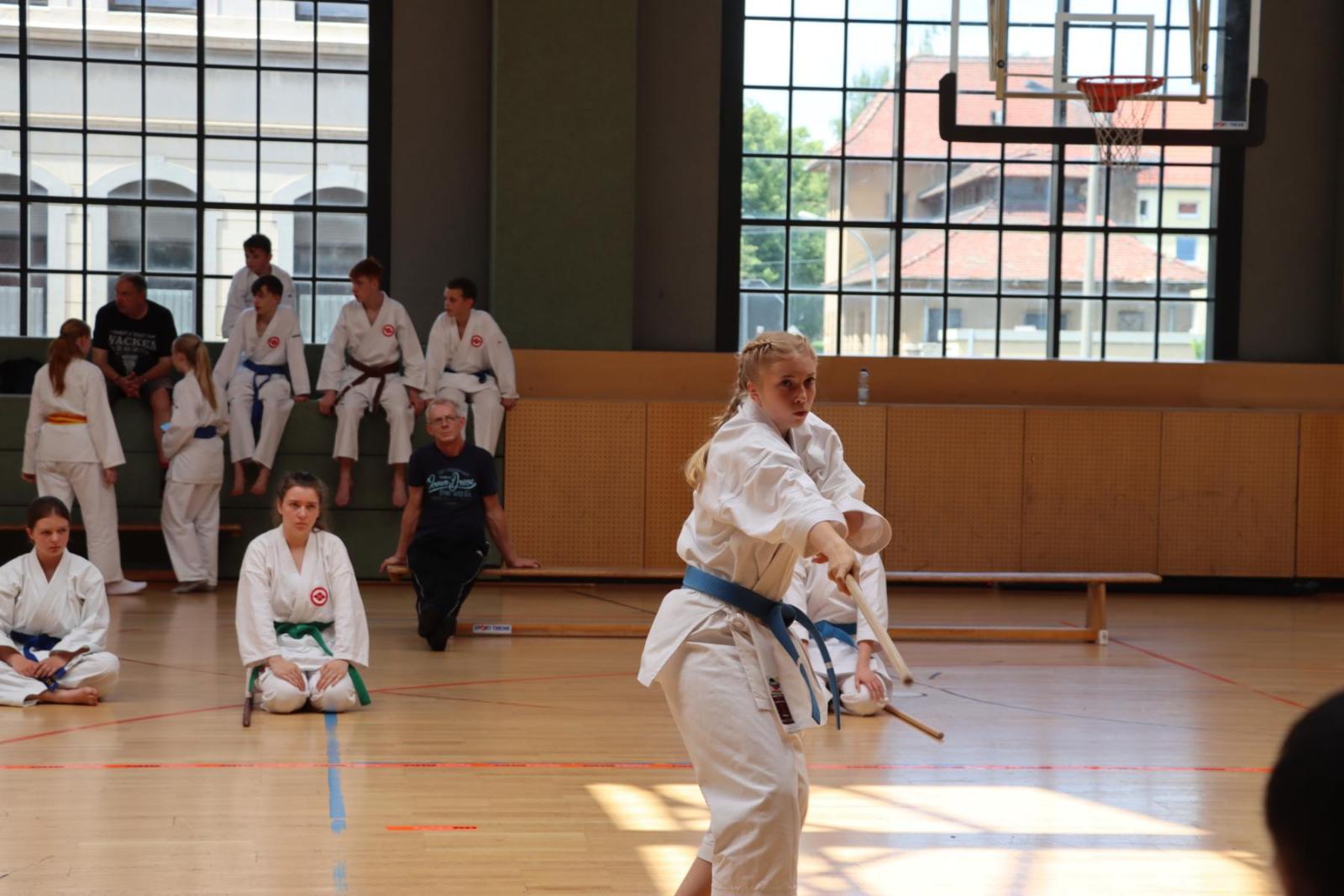 Die Kinder- und Jugendlichen konnten ihre erlernten Fähigkeiten von den Kampfrichtern in verschiedenen Disziplinen bewerten lassen. So gab es die Disziplinen Karate-Kata, Bo-Kata und Kumite.
