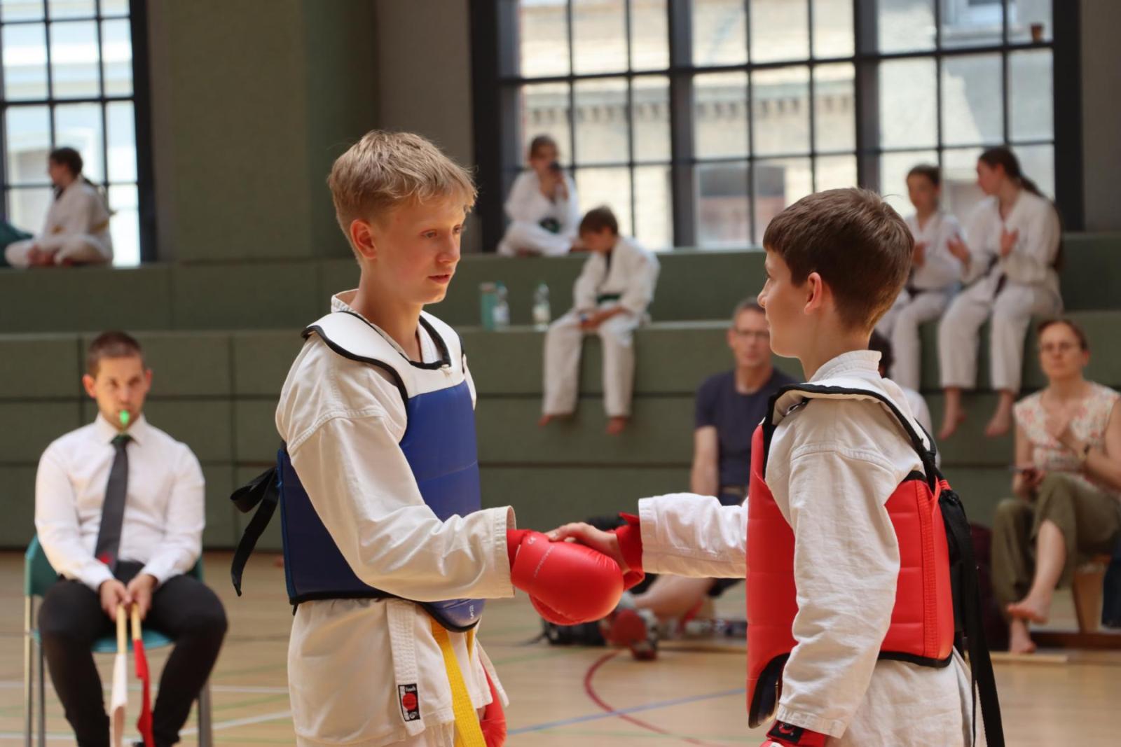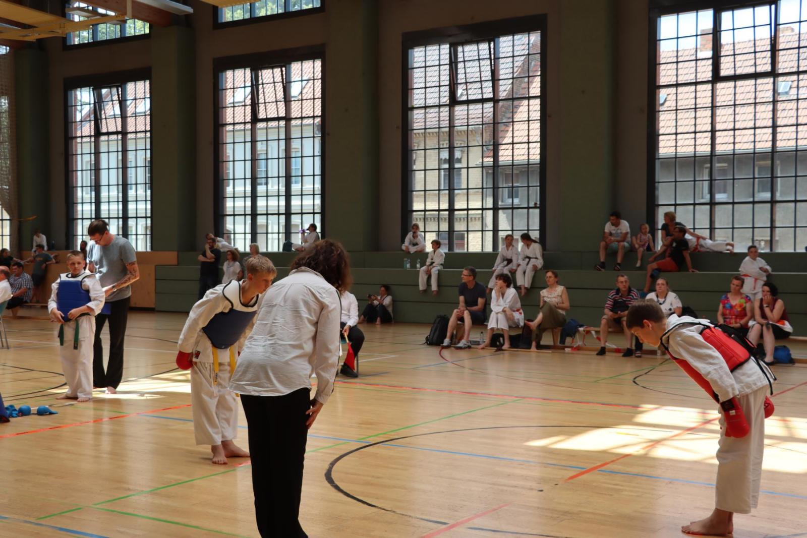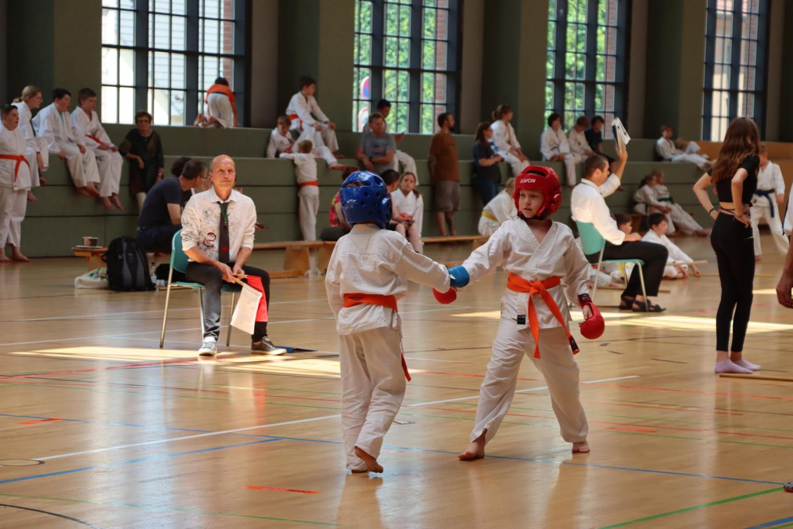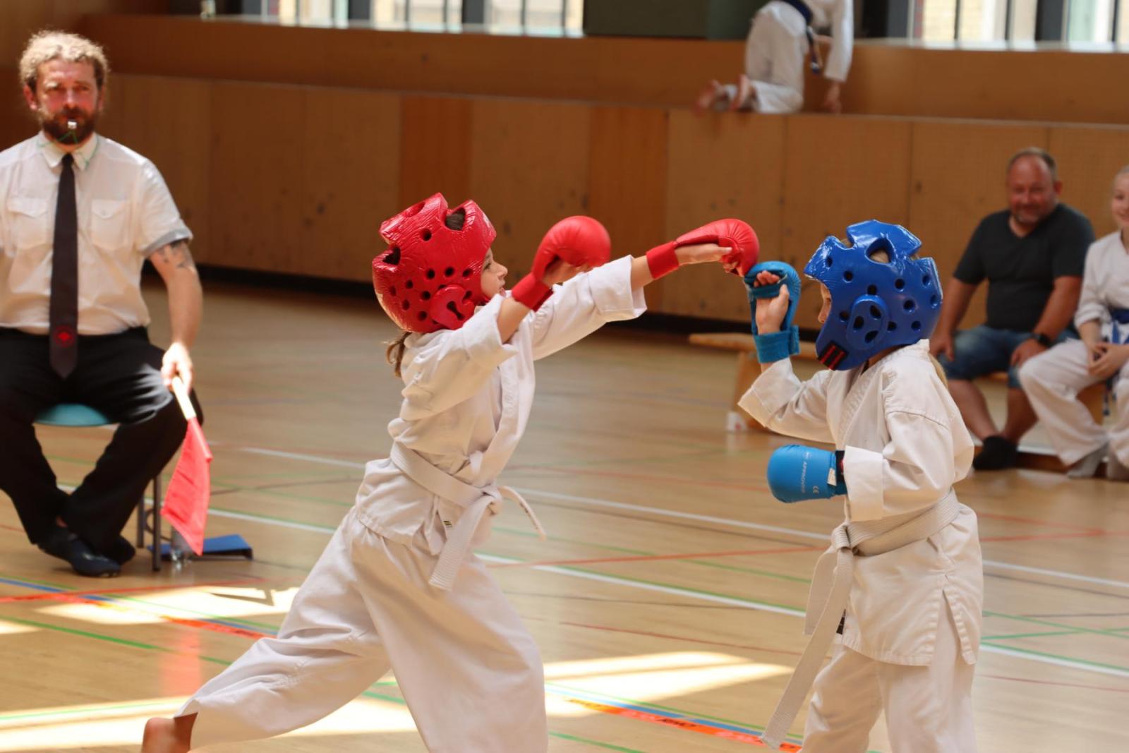 Die Kinder- und Jugendlichen konnten ihre erlernten Fähigkeiten von den Kampfrichtern in verschiedenen Disziplinen bewerten lassen. So gab es die Disziplinen Karate-Kata, Bo-Kata und Kumite.