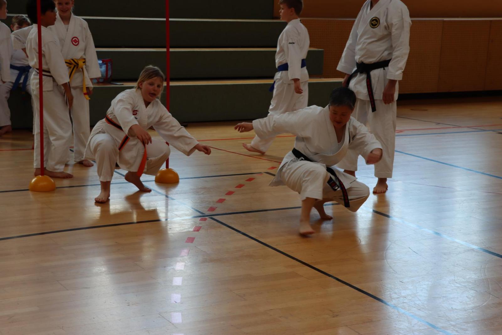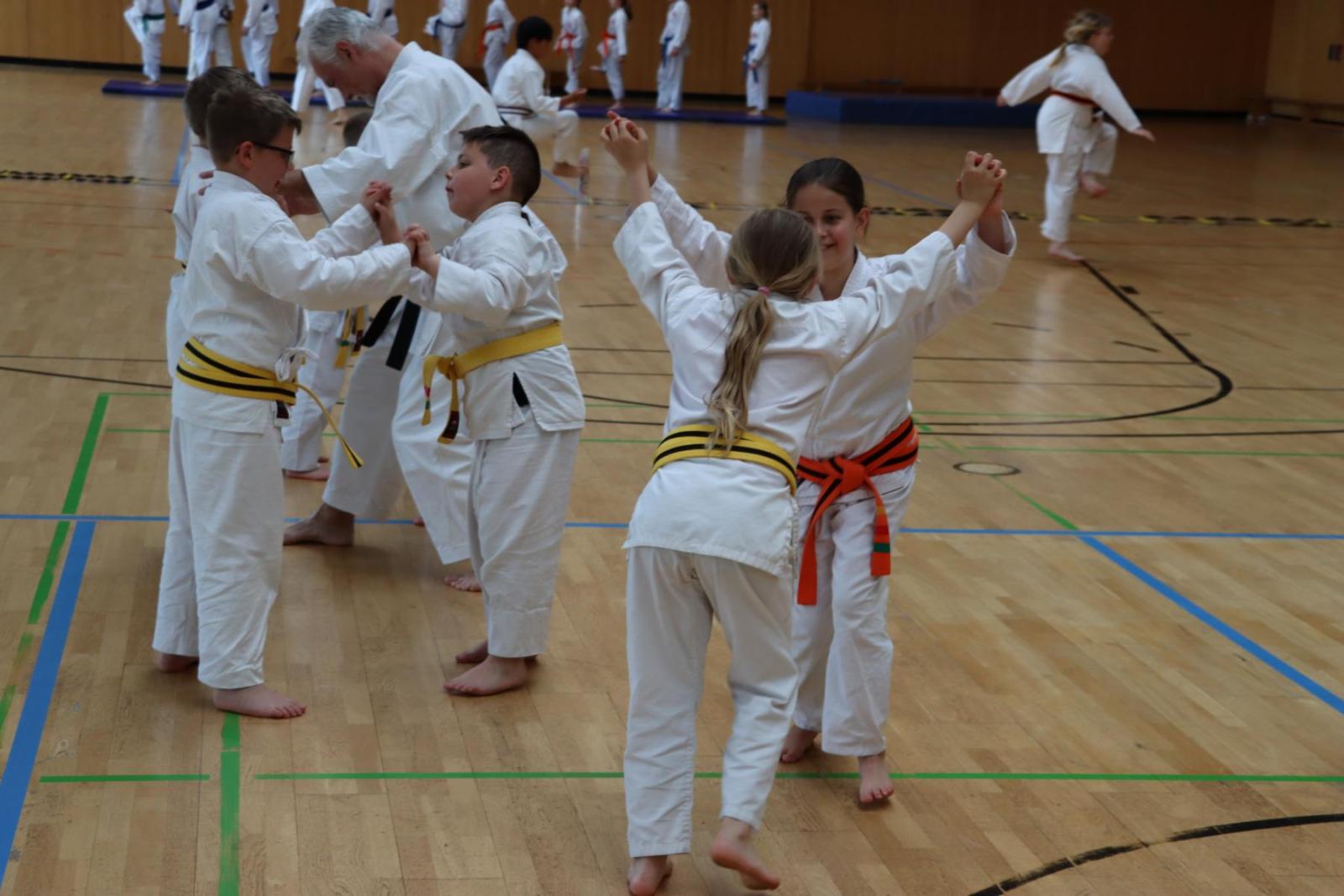 Am Samstag konnten die Kinder in verschiedenen Gruppen bei unterschiedlichen Schwarzgurten trainieren. Jeder Trainer setzte eigene Schwerpunkte, doch im Mittelpunkt standen Bewegung und vor allem der Spaß und davon gab es reichlich! Nicht nur die Kinder hatten ihren Spaß, auch die Trainer und Zuschauer kamen voll auf ihre Kosten.
